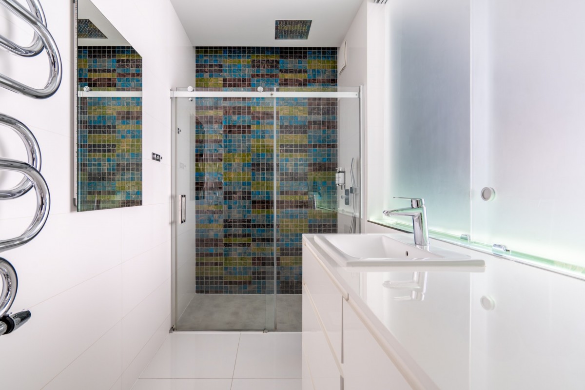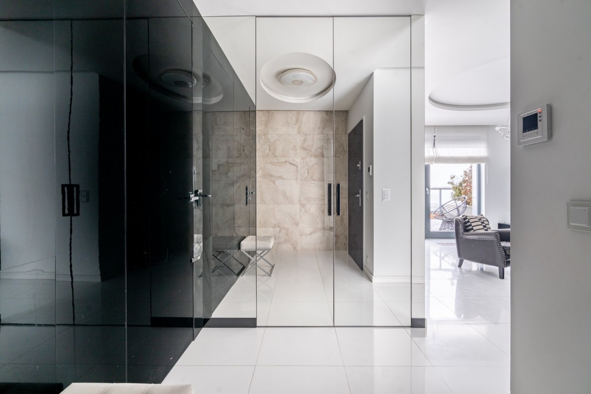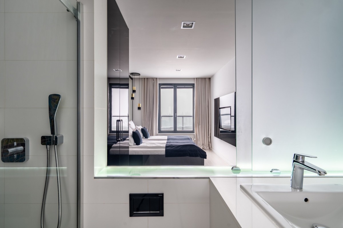 Luksusowy apartament nad samą Motławą to kwintesencja nowoczesnego stylu i prestiżowej lokalizacji. Wnętrze zaprojektowano w estetyce modern glam, w której dominują jasne barwy, lustrzane powierzchnie oraz starannie dobrane oświetlenie, potęgujące wrażenie przestronności. Sercem mieszkania jest słoneczny salon połączony z funkcjonalnym aneksem kuchennym w białym połysku, wyposażonym w wysokiej klasy sprzęt AGD i designerski okap wyspowy. Strefę wypoczynkową sypialni wyróżnia monumentalny, tapicerowany zagłówek oraz panoramiczne okna, które pozwalają budzić się z widokiem na historyczny Gdańsk. Łazienka zachwyca nowoczesnym prysznicem typu walk-in z unikatową, kolorową mozaiką. Całość dopełnia przestronny, drewniany taras z widokiem na przepływające galeony i koło AmberSky, stanowiący idealne miejsce do relaksu w samym sercu miasta.