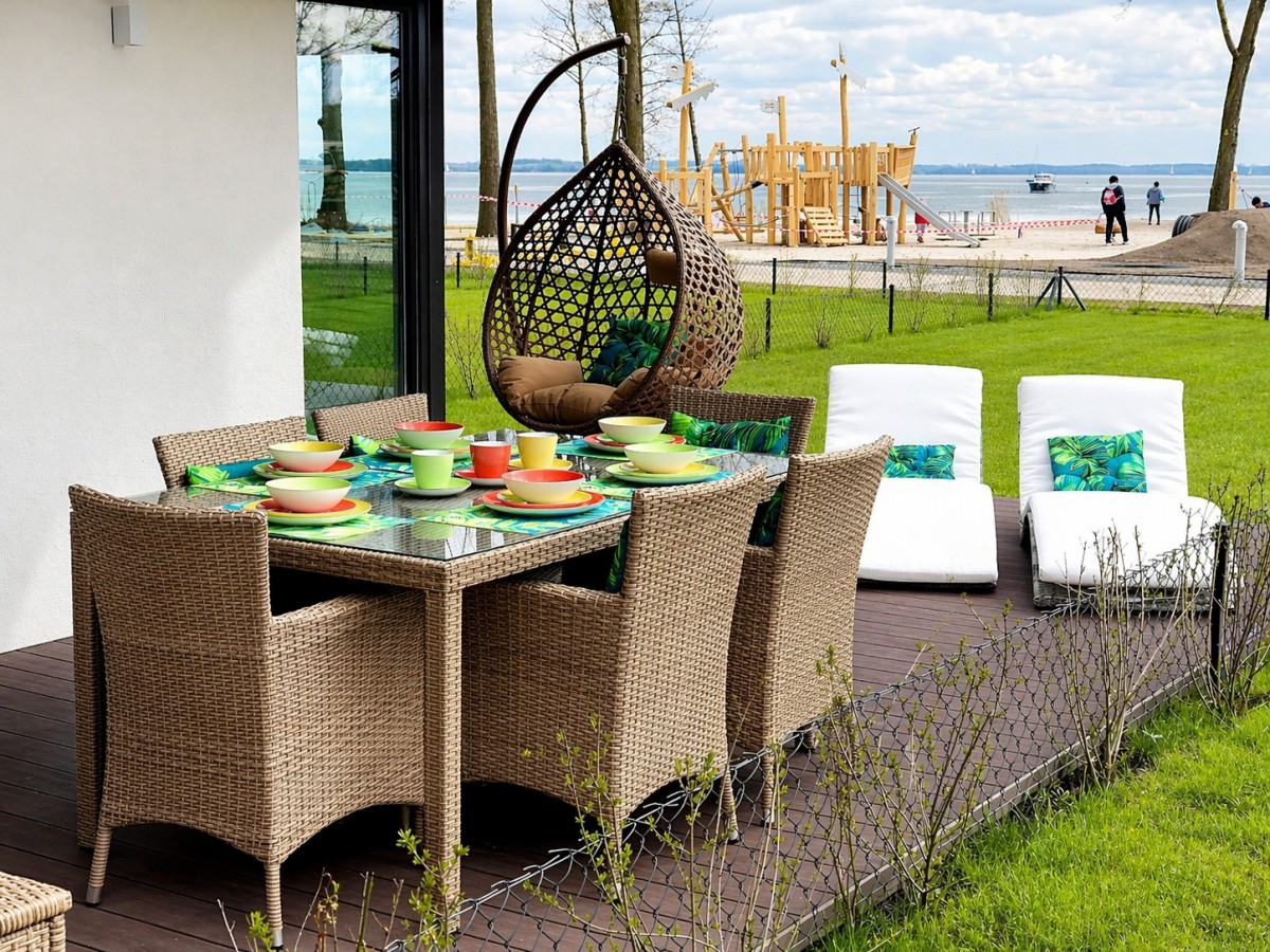 Taras oraz prywatny ogródek z bezpośrednim widokiem na jezioro