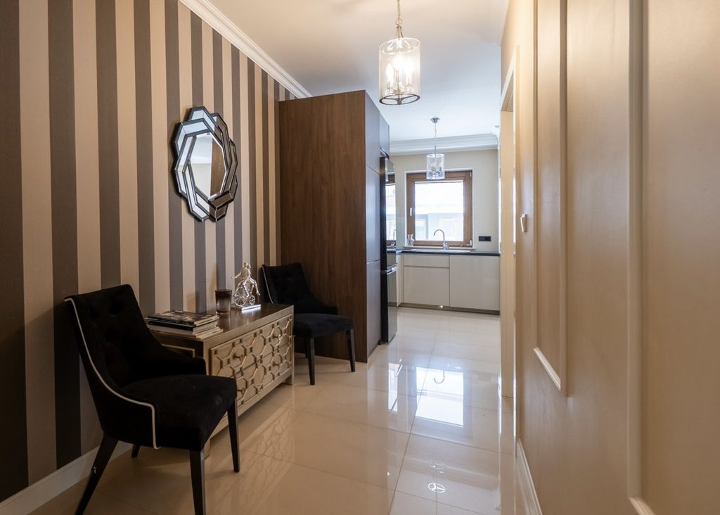 Nieruchomość emanuje elegancją w stylu glamour. Mieszkanie jest eleganckie, urządzone ze smakiem.