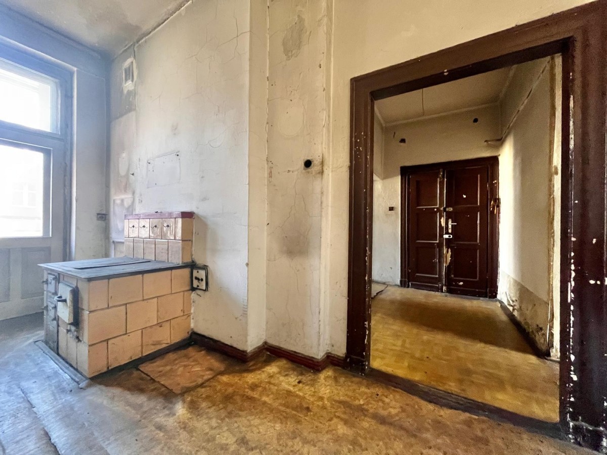 W mieszkaniu pozostały oryginalne drzwi, które można odrestaurować, aby nadać mieszkaniu wyjątkowy klimat .