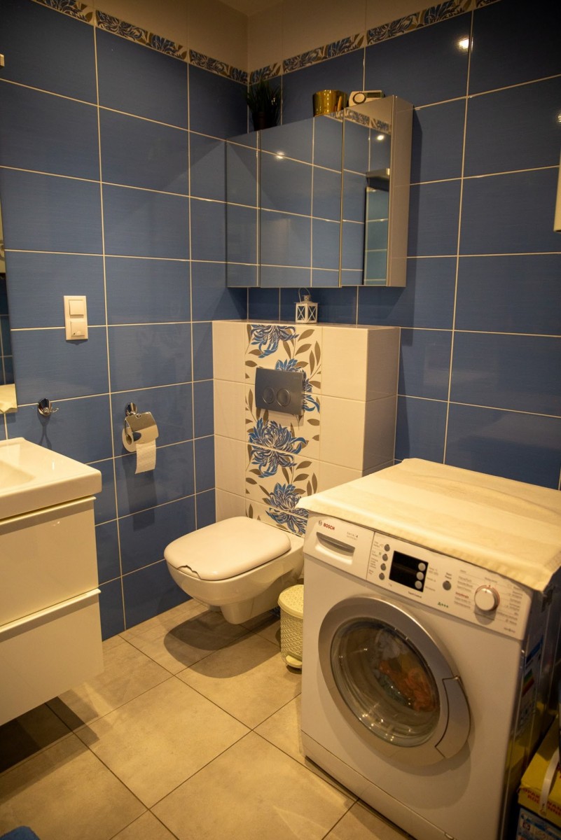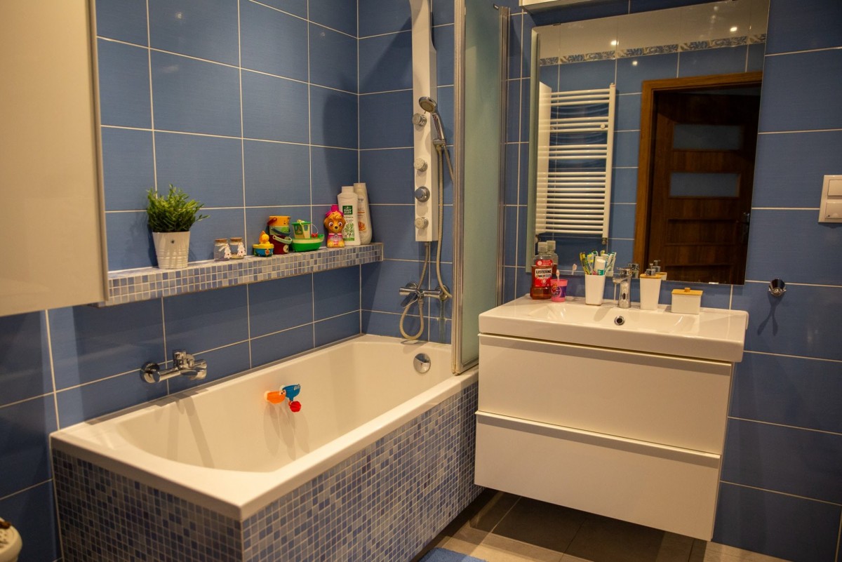 Mieszkanie jest umeblowane (właściciele chcą zachować jedynie kanapę i meble dziecięce). W pełni wyposażona kuchnia i łazienka - zmywarka, okap, lodówka, piekarnik, pralka, wanna, prysznic.