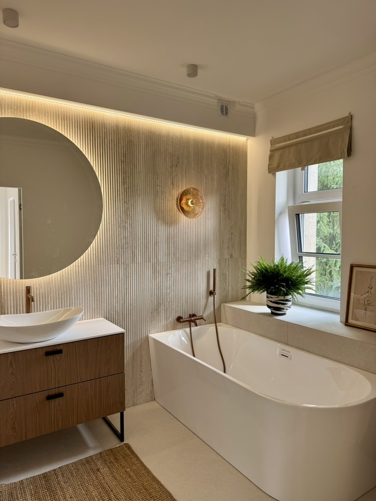 • dwie łazienki (jedna z oknem i wanną, druga z prysznicem, ogrzewanie podłogowe),