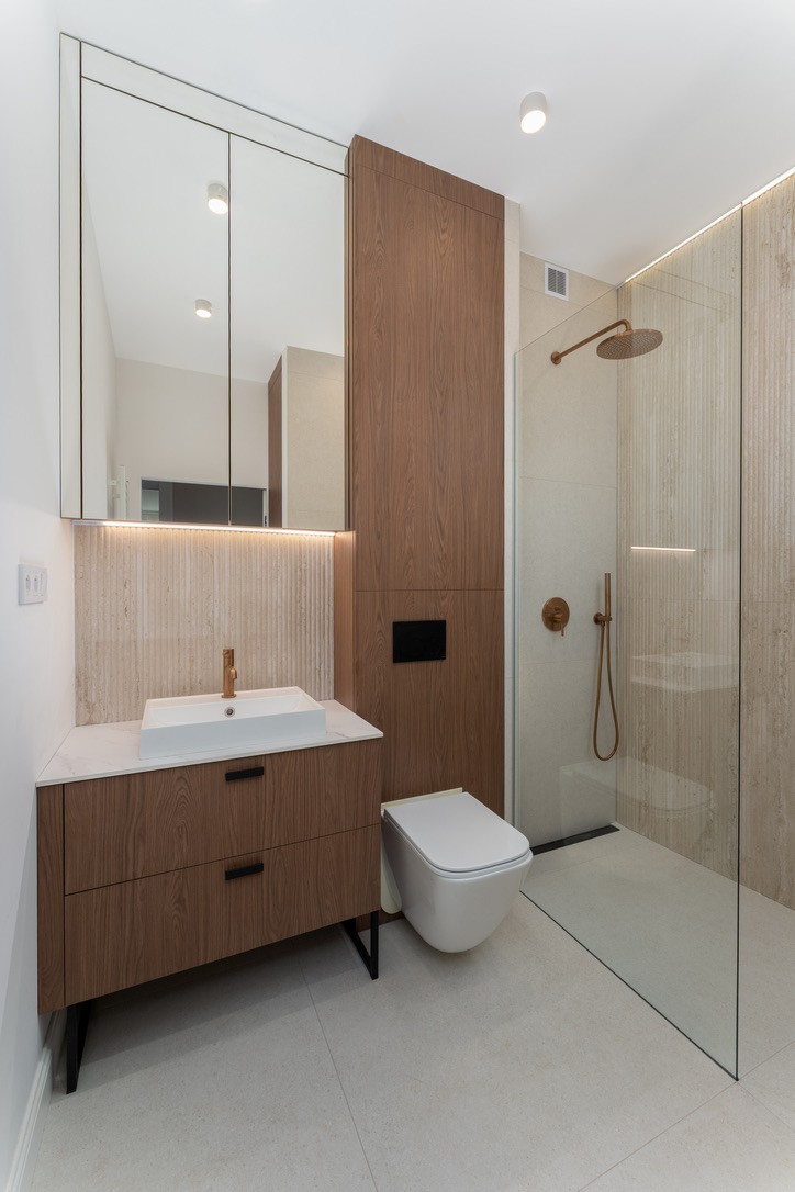 • dwie łazienki (jedna z oknem i wanną, druga z prysznicem, ogrzewanie podłogowe),