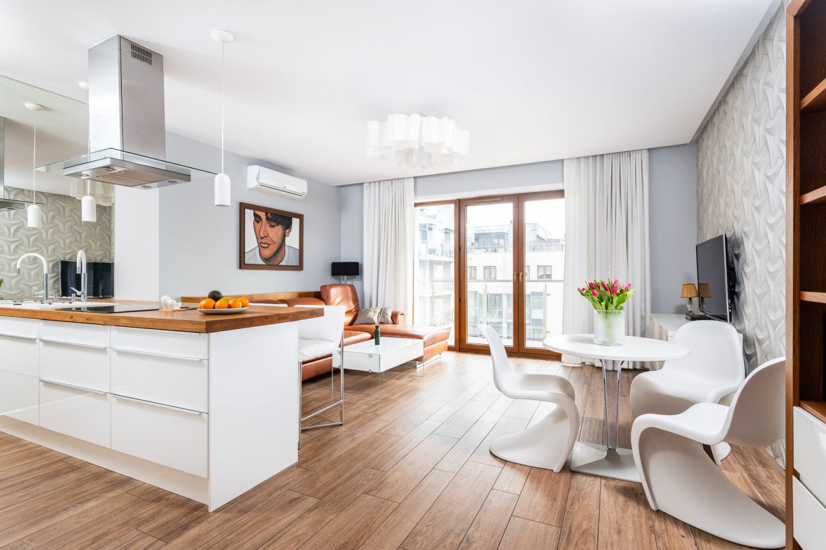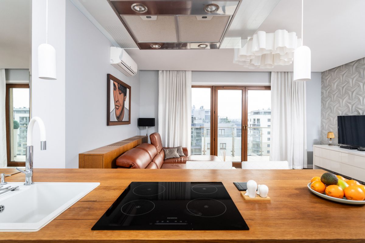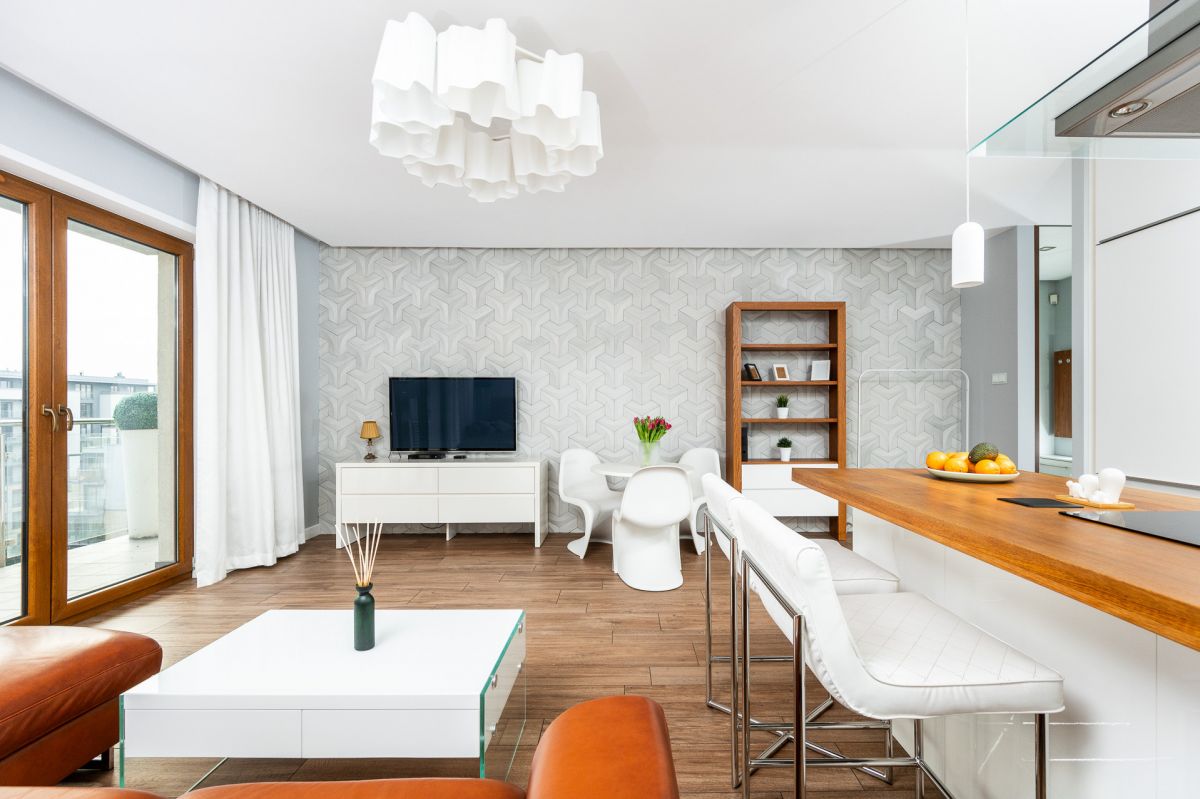 Apartament typu studio w wysokim standardzie znajdujący się w kompleksie Wiślane Tarasy.