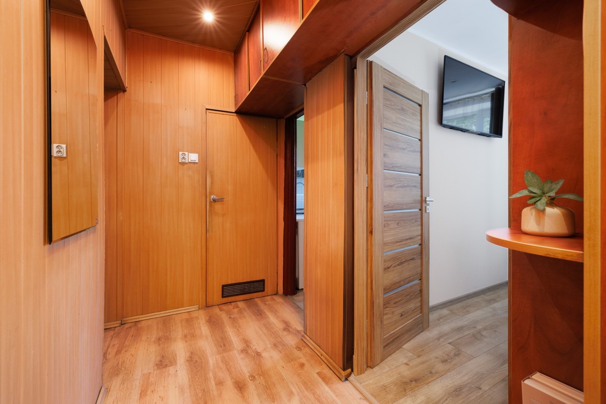 Mieszkanie znajduje się w ocieplonym budynku z 1955 roku i wymaga remontu. Ekspozycja na południowy zachód zapewnia przyjemne światło po południu i wieczorem. Do mieszkania przynależy duża, 10 metrowa piwnica.