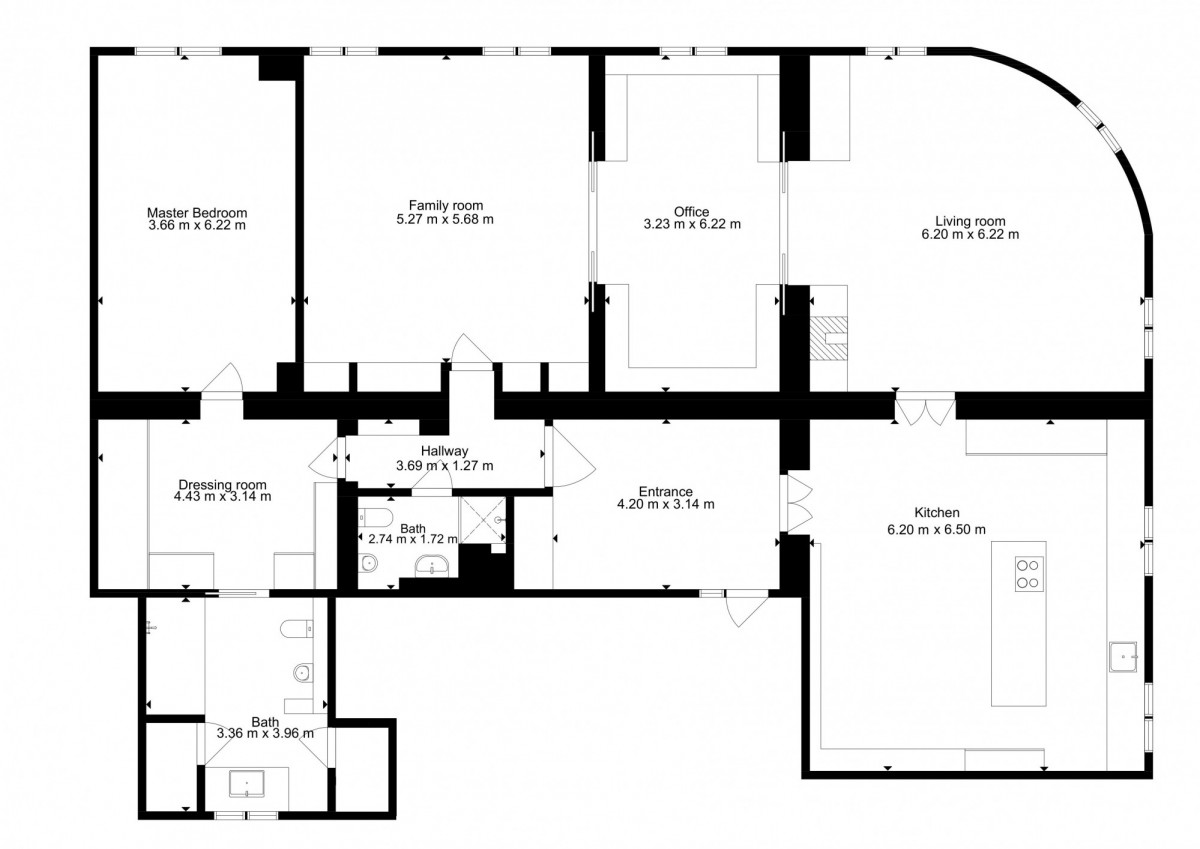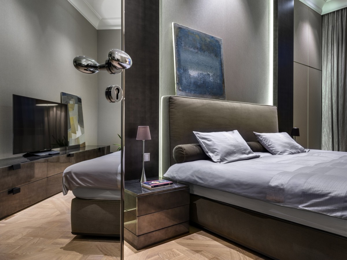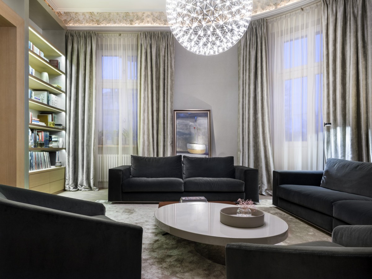 Apartament zachował oryginalne elementy architektoniczne, takie jak wysokie sufity z dekoracyjnymi sztukateriami. Cześć dzienna to bardzo przestronna kuchnia oraz 3 pokoje z pięknymi przesuwnymi drzwiami, co gwarantuje dowolną aranżację tej przestrzeni. W apartamencie zaprojektowano część prywatną, składająca się z głównej sypialni, pięknej lustrzanej garderoby i prywatnej łazienki. Całość została zaprojektowana z dbałością o proporcje, detal i jakość materiałów, harmonijnie łącząc historyczny charakter z nowoczesnym komfortem życia.
