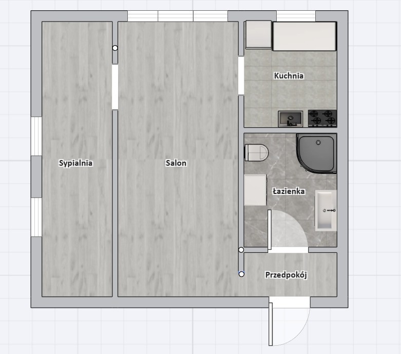 - 2 pokoje, kuchnia, łazienka z prysznicem,