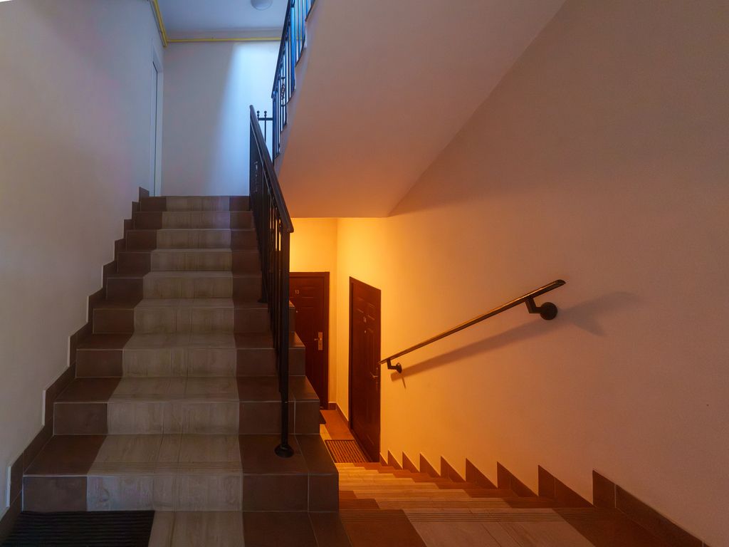 The apartment is located on the ground floor of a three-story building. The building is well-maintained.