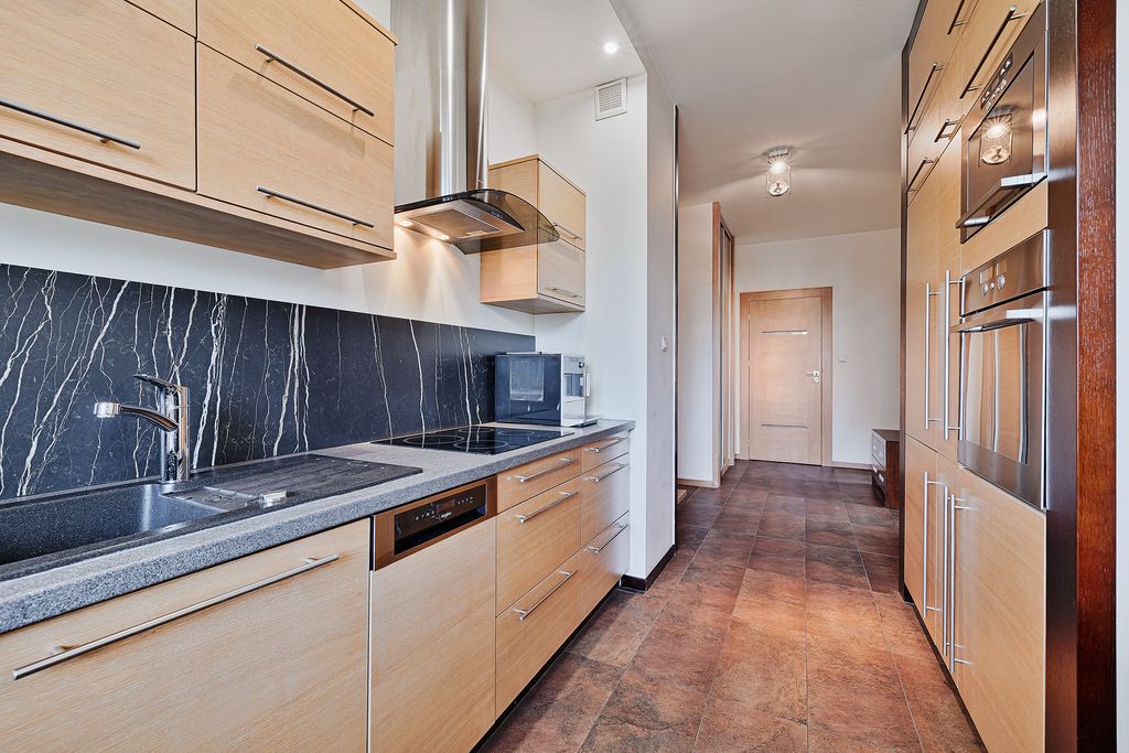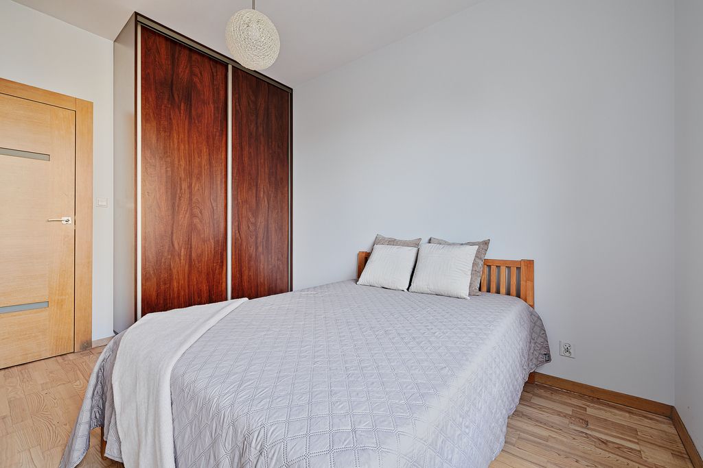 Mieszkanie składa się z dwóch niezależnych pokoi – salonu z wyjściem na balkon oraz sypialni. Kuchnia jest oddzielna i w pełni wyposażona w sprzęt AGD: lodówkę, zmywarkę, mikrofalówkę oraz piekarnik. Lokal jest klimatyzowany. Do mieszkania przynależy miejsce postojowe w garażu podziemnym – dodatkowo płatne 40 000 zł.