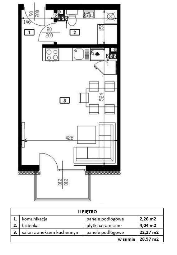 - Powierzchnia:28,57 m2
