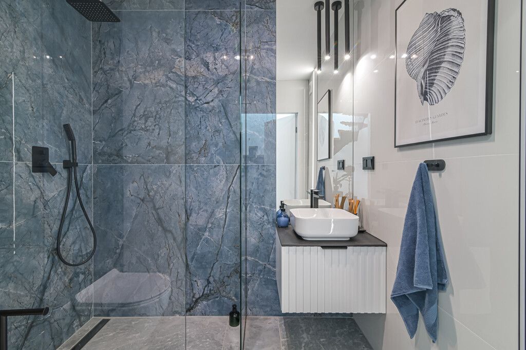 - Łazienki: prysznice walk-in, ogrzewanie podłogowe, armatura premium