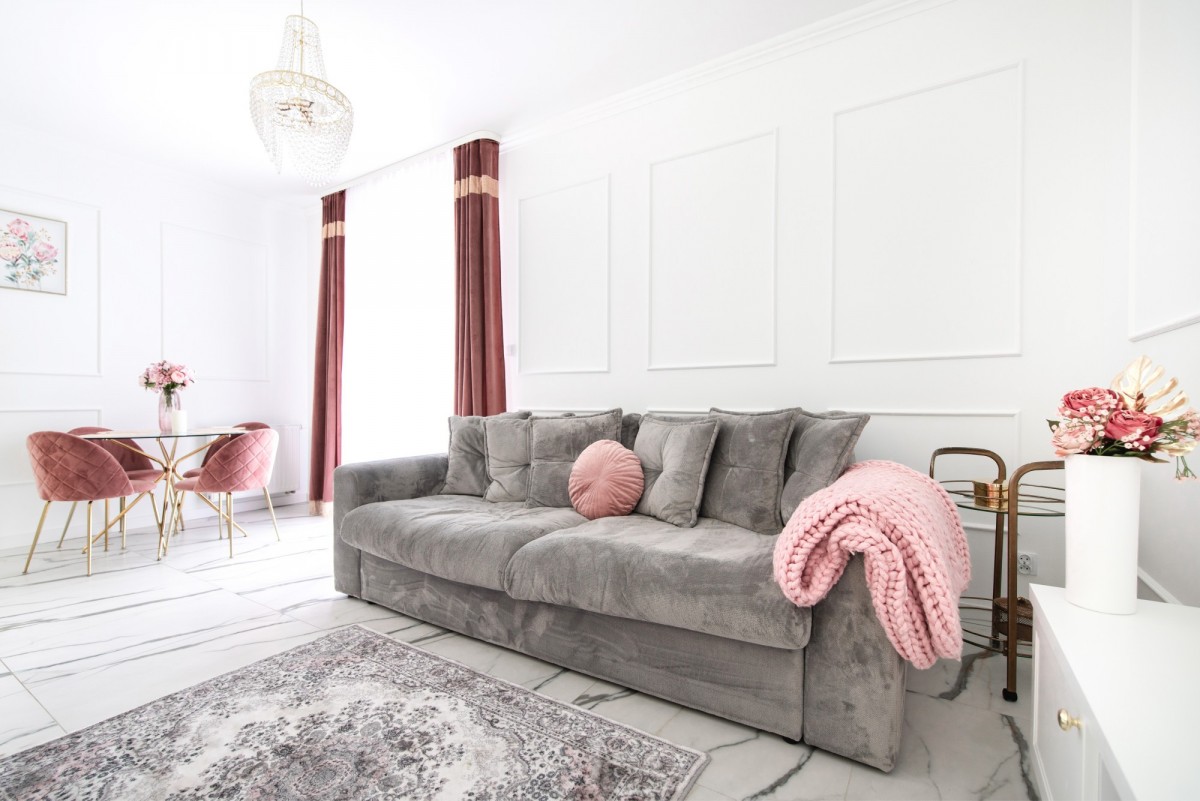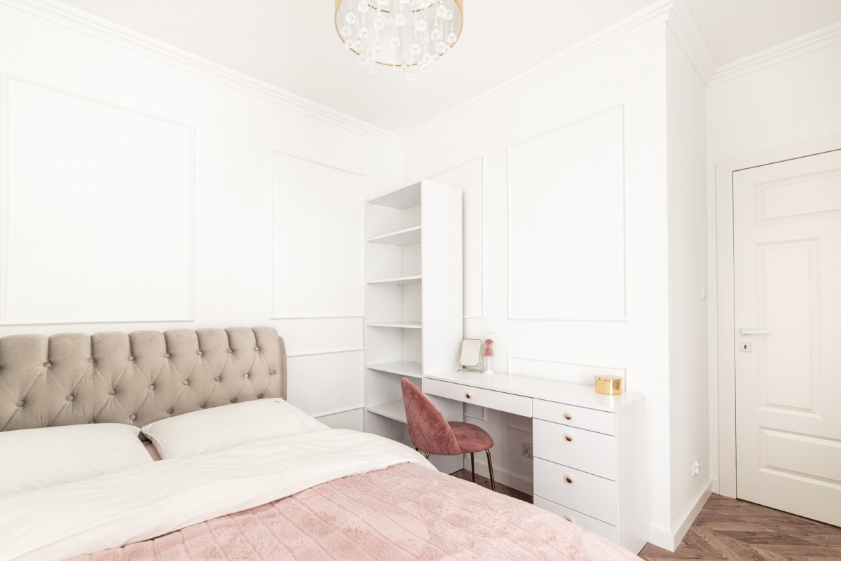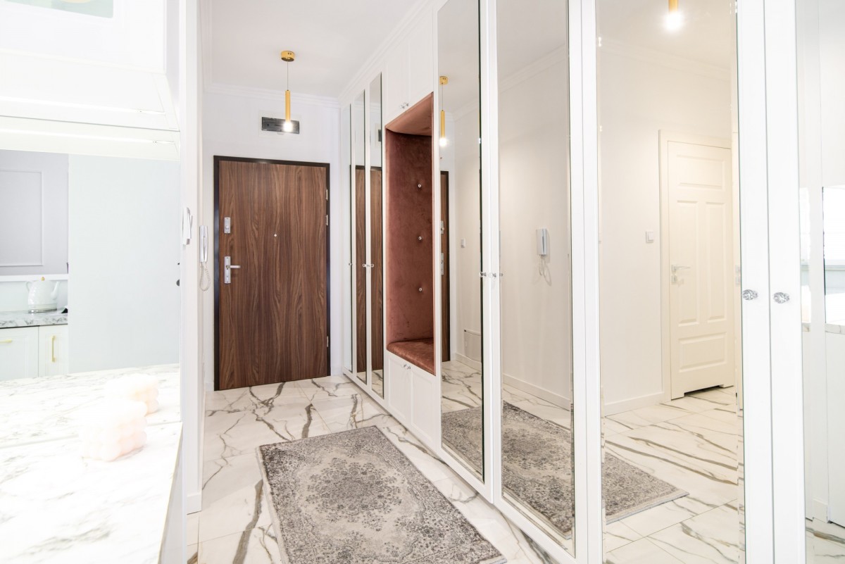 Mieszkanie zaprojektowane z wyczuciem stylu i dbałością o detale. Eleganckie, jasne wnętrza z elementami wykończenia w stylu glamour - złote akcenty, wysokiej jakości materiały, funkcjonalne rozwiązania.