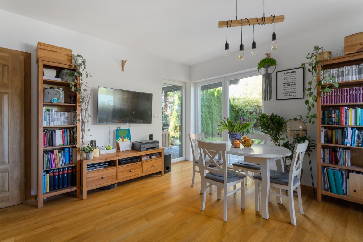 - przestronny salon z aneksem kuchennym, tworzący serce domu i naturalną przestrzeń do wspólnego spędzania czasu, jest to jasna przestrzeń dzięki dużym oknom,