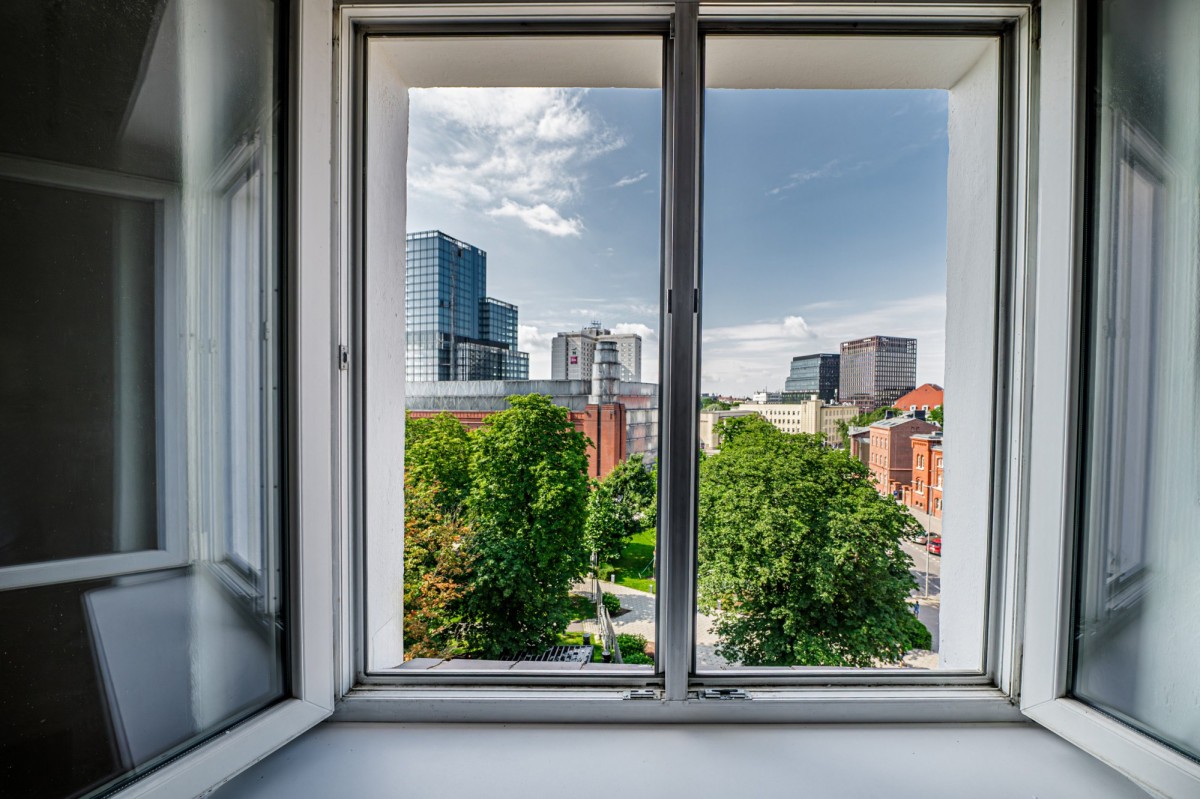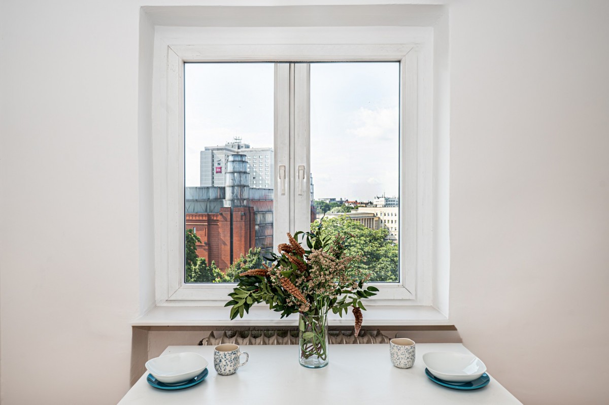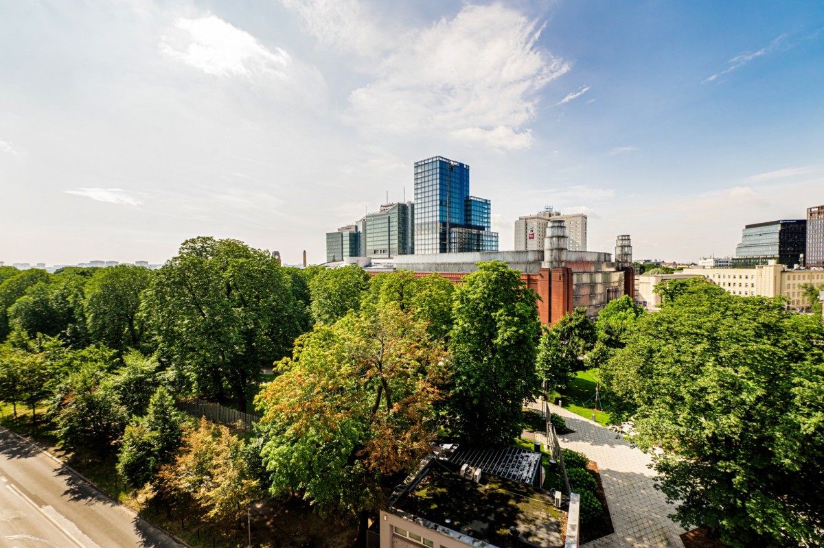 Z okien rozpościera się piękna panorama na park przy Starym Browarze - miejsce idealne do spacerów i odpoczynku, mimo że jesteś w samym centrum miasta.