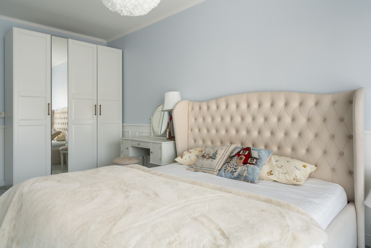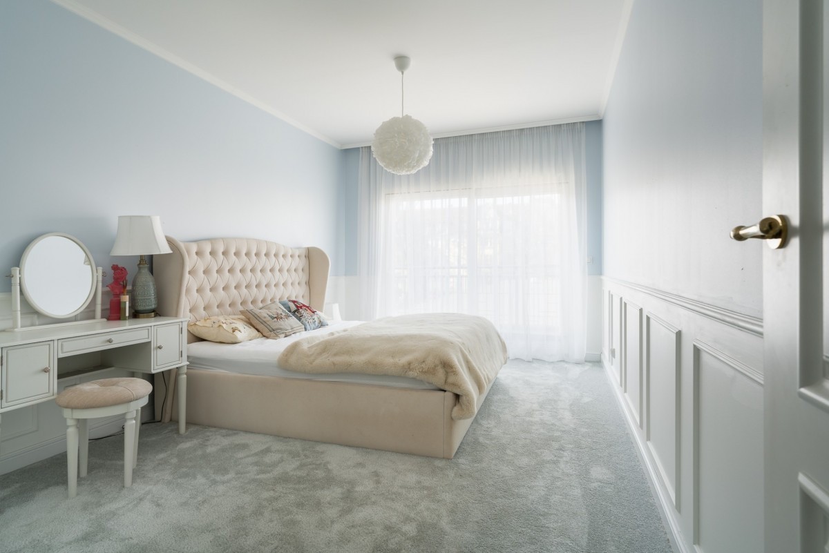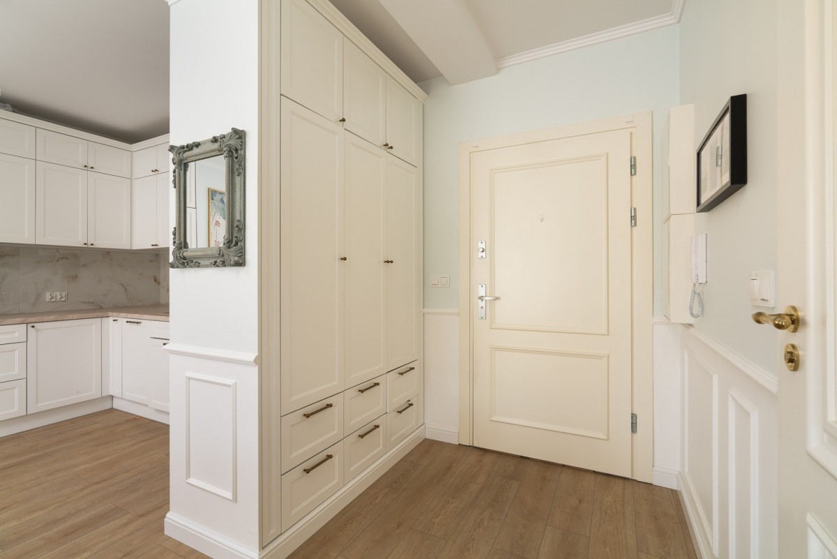 Apartament został wyposażony w centralne ogrzewanie stropowe, dzięki czemu nie ma grzejników a ogrzewa się tylko ciała stałe.
