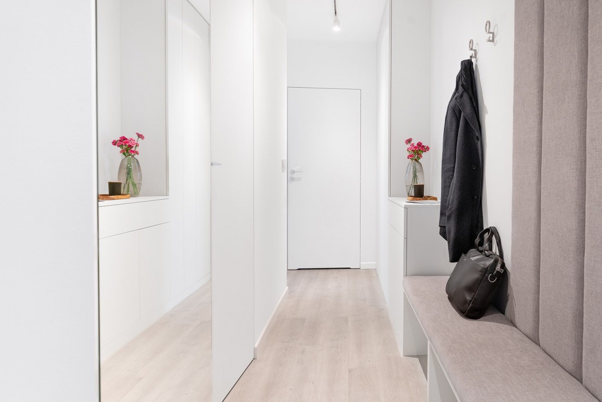 Hall: 8,68 m² (z siedziskiem i lustrem).