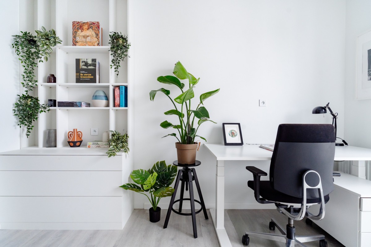 Home Office: Pokój z 2 biurkami Kinnarps z elektryczną regulacją wysokości.