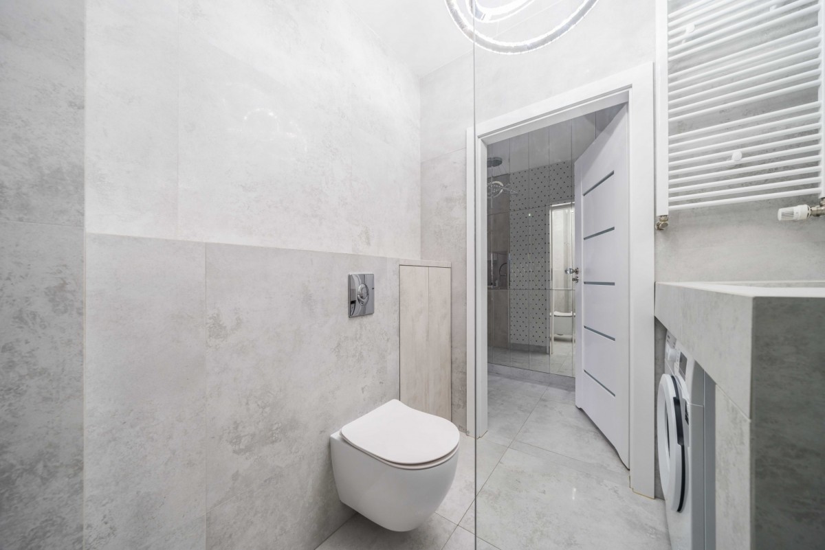 łazienka z prysznicem- estetycznie wykończona;