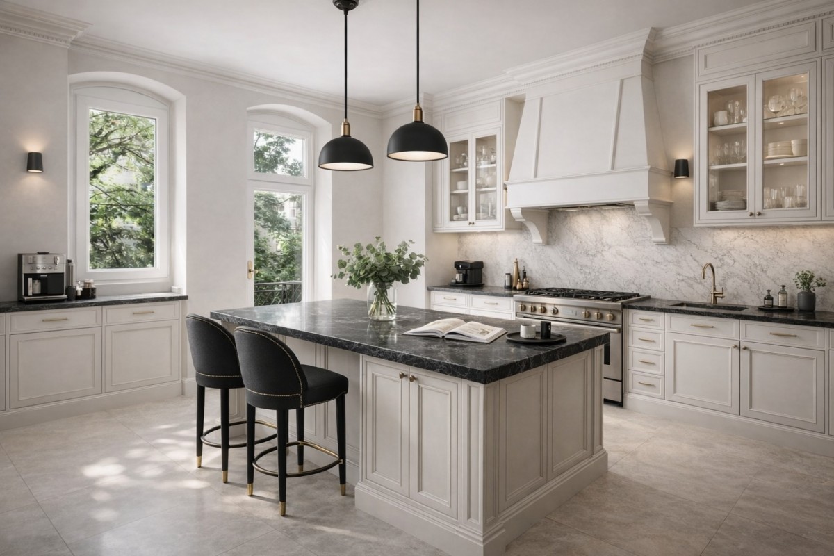 - Wysokie sufity, duże okna oraz charakterystyczny wykusz, które nadają wnętrzom przestrzeń i doskonałe doświetlenie.