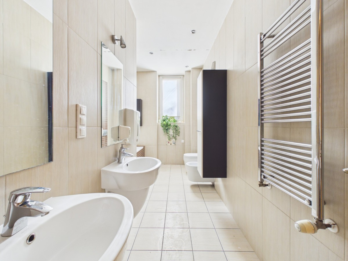 - Przestronna łazienka z oknem - wanna i prysznic, WC, bidet, miejsce na pralkę (ogrzewanie podłogowe)