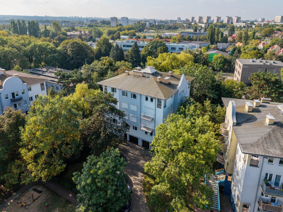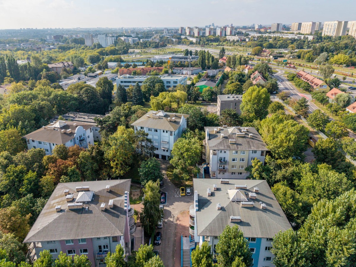 Blok z 2000 roku położony jest na zamkniętym, zielonym osiedlu z placem zabaw oraz stawem i altaną rekreacyjną przeznaczoną wyłącznie dla mieszkańców. Osiedle wyróżnia się spokojem i dużą ilością zieleni, dzięki czemu nie przypomina typowego blokowiska.