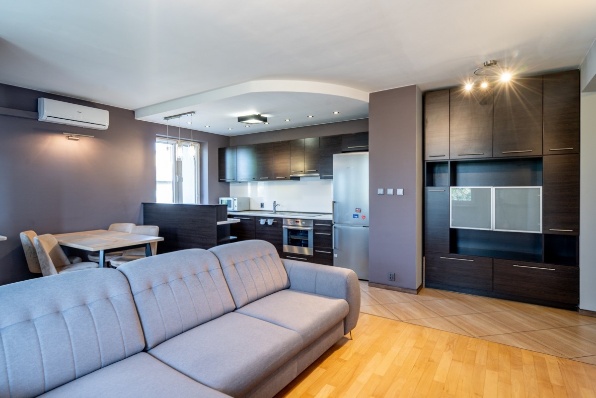 Mieszkanie posiada klimatyzację w salonie, balkon oraz miejsce parkingowe w garażu na poziomie 0 (dodatkowo płatne).
