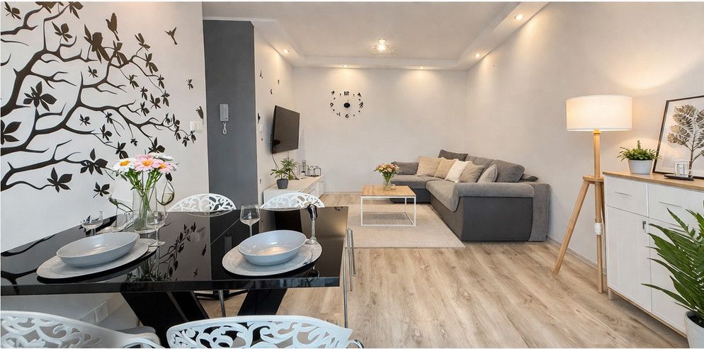 Mieszkanie sprzedawane z pełnym umeblowaniem i sprzędem RTV I AGD widocznym na zdjęciach.