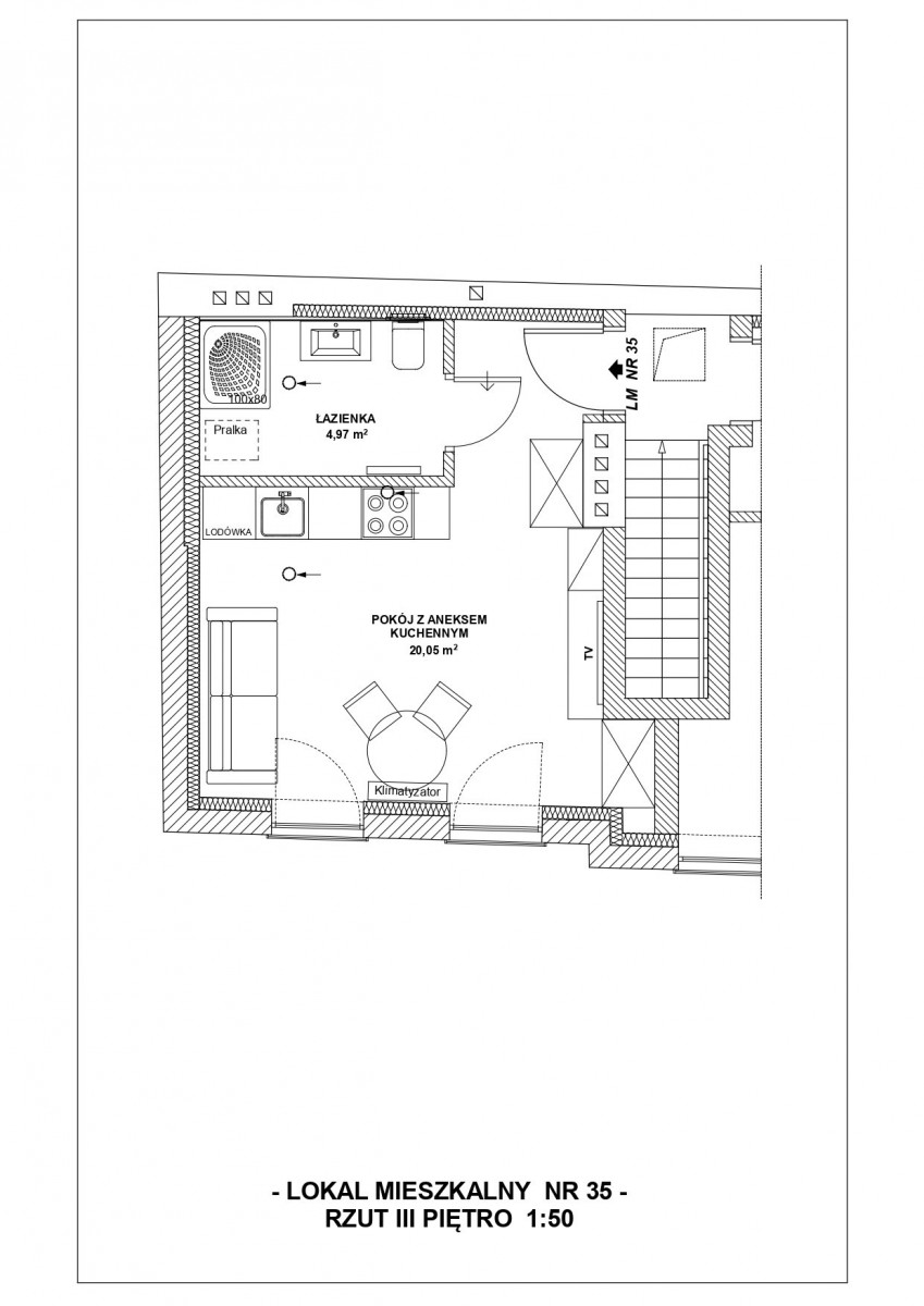 - pokój z aneksem kuchennym pow. 20,05 m2