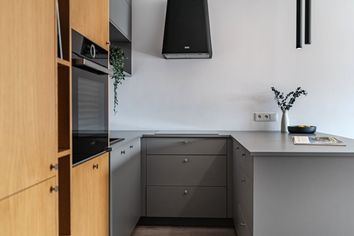 * Kuchnia na wymiar, pełne AGD: lodówka z zamrażarką Samsung, piekarnik Bosch, płyta indukcyjna i okap Electrolux,