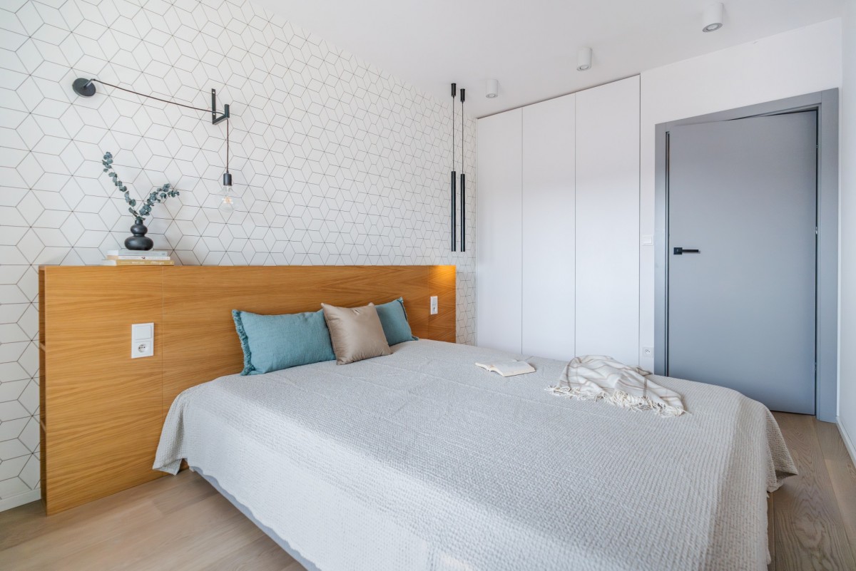 * Duże łóżko z pojemnikiem na pościel i zagłówkiem wykonanym na wymiar,
