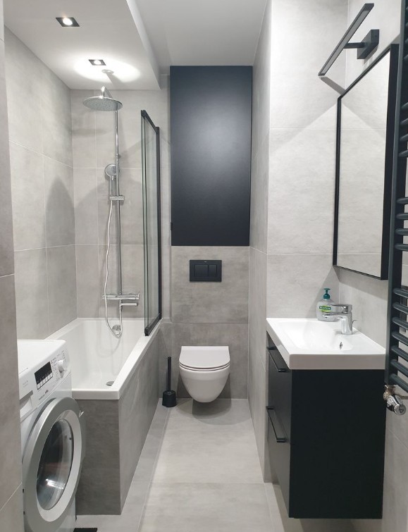 elegancka łazienka z wanną, pełniącą także funkcję prysznica dzięki zbrojonej szybie