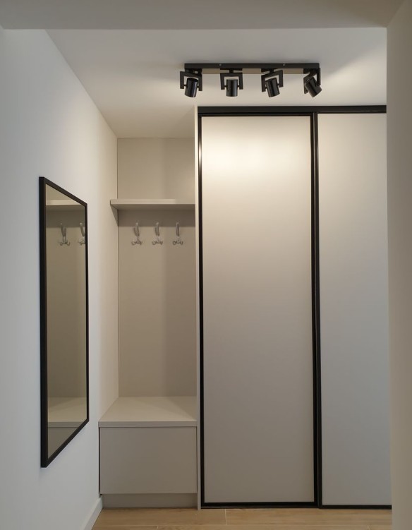 praktyczne rozwiązania do przechowywania: ogromna szafa w korytarzu, zabudowa kuchenna do sufitu