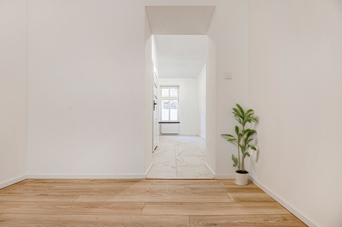 Mieszkanie znajduje się na wysokim parterze w kamienicy po remoncie.