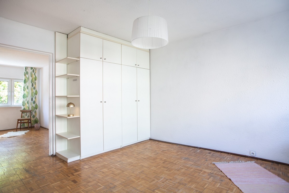- Dwa pokoje (układ przejściowy): z salonu wejście do kuchni oraz do drugiego pokoju.