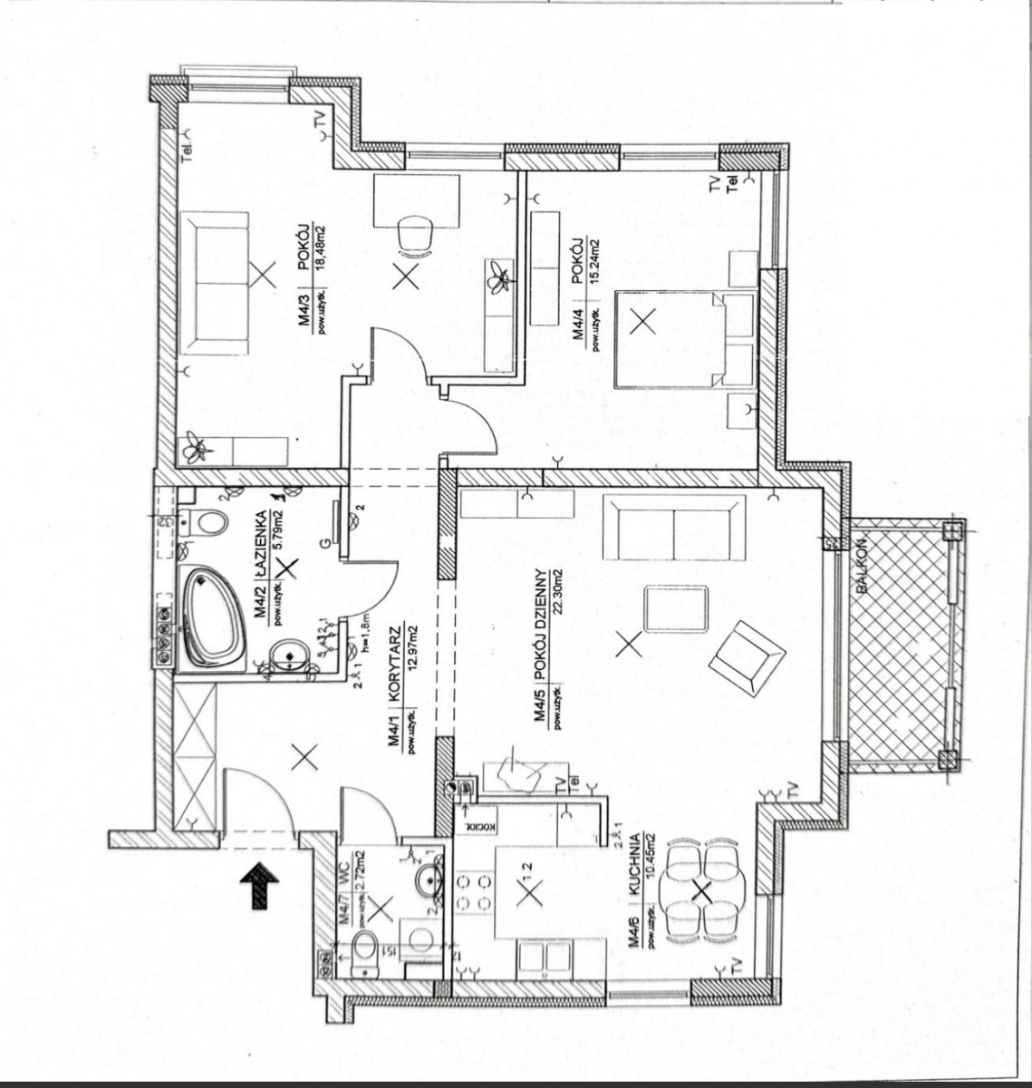 Powierzchnia: 90 m², w tym 3 pokoje, przestronna kuchnia, 2 łazienki oraz dodatkowa komórka lokatorska o powierzchni 2,05 m² (z oknem), tuż przy mieszkaniu.