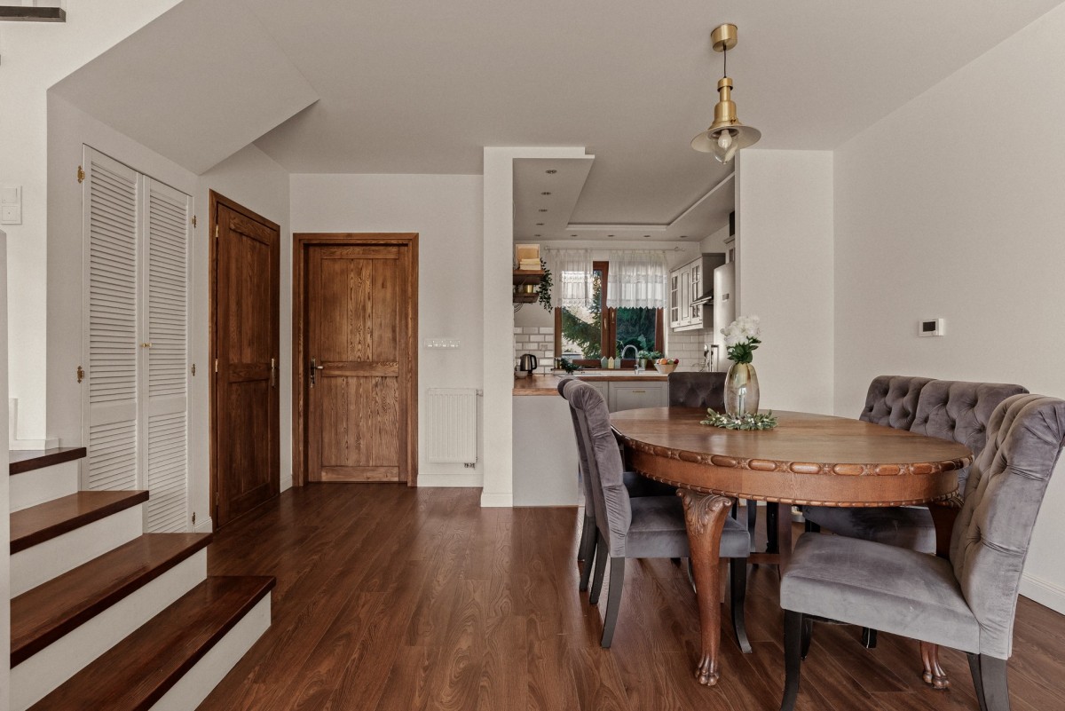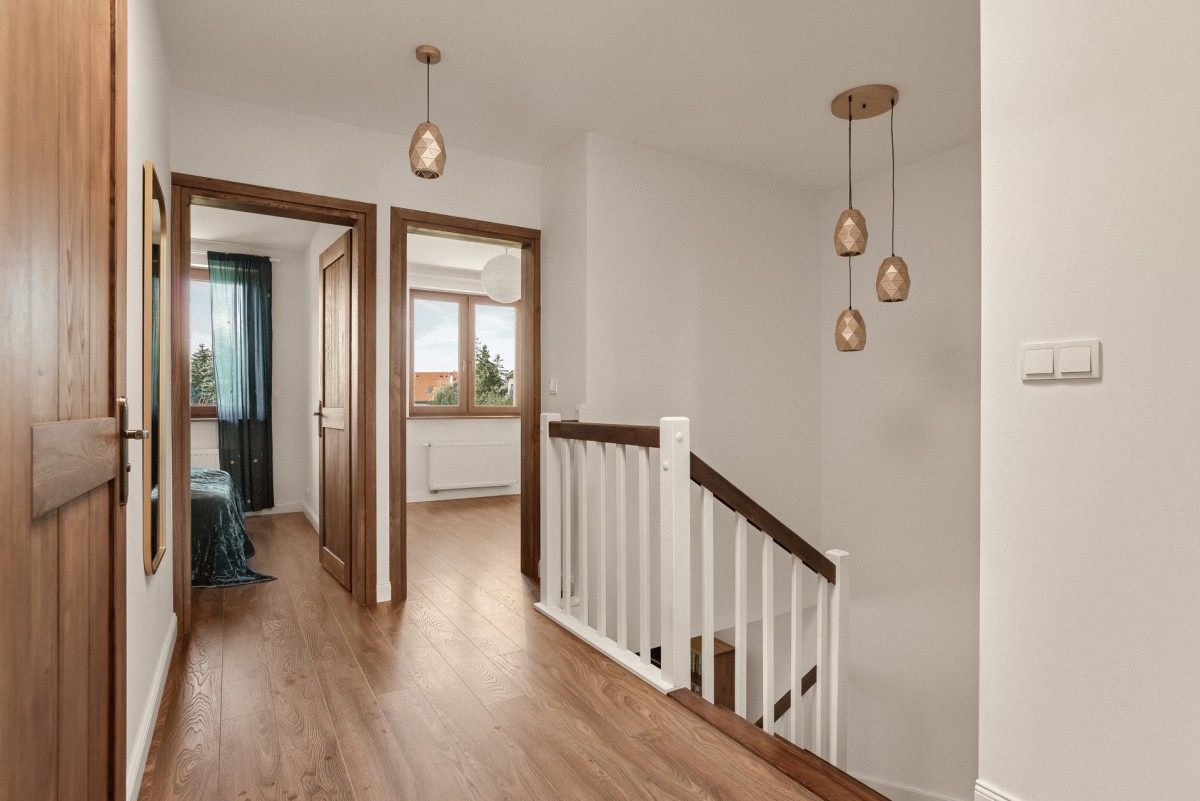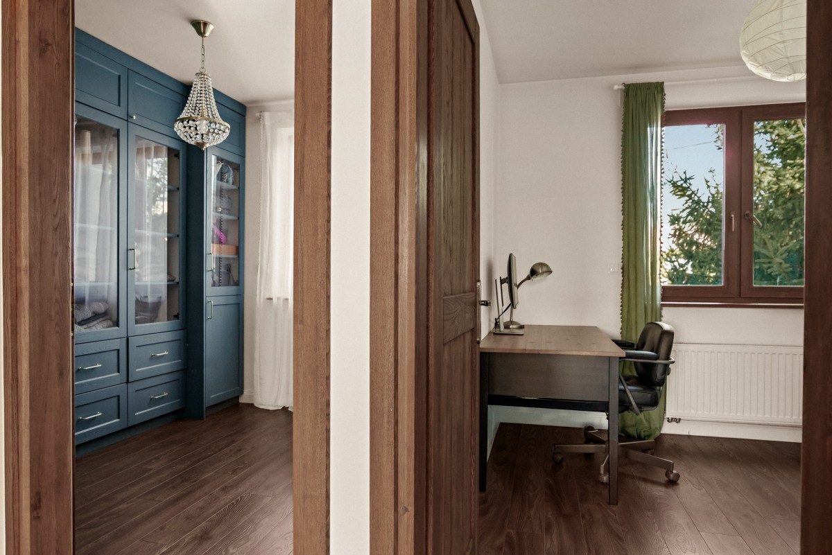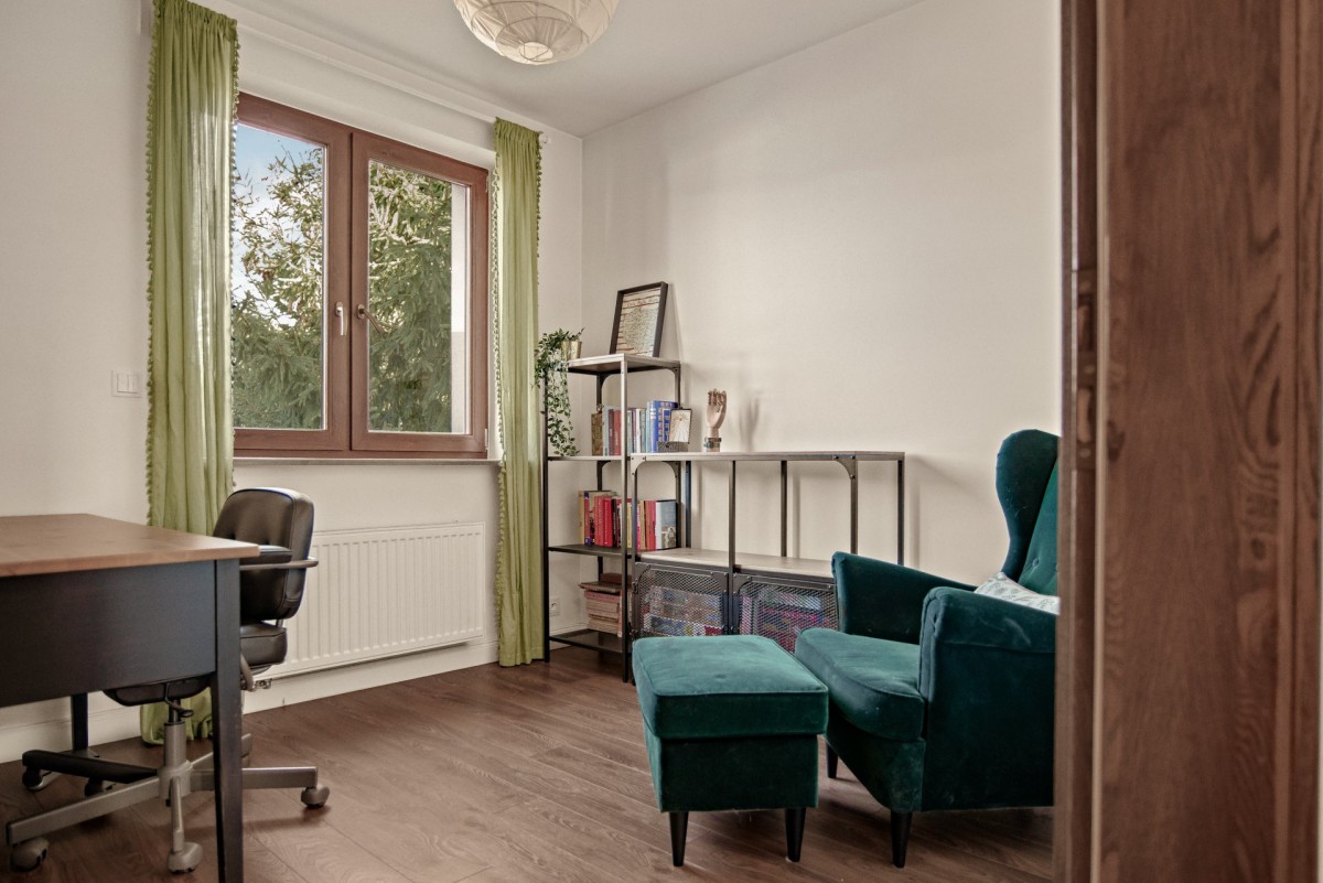 Salon 36 m² z tarasem 18 m² | Ogród większy niż w szeregówkach | Dwupoziomowy układ | Bezczynszowe | Ogrzewanie podłogowe + piec DeDietrich | Rolety antywłamaniowe | Ściana z cegły w salonie | 5 min pieszo do lasu i Rusałki