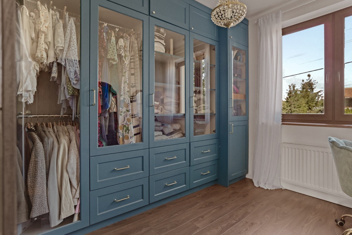 * sypialnia 4 - 9 m² (od ulicy, zaadaptowana na garderobę),