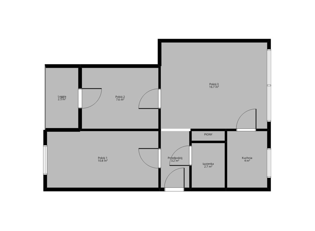 - Pokój: 8 m² Loggia ok. 2,5m2