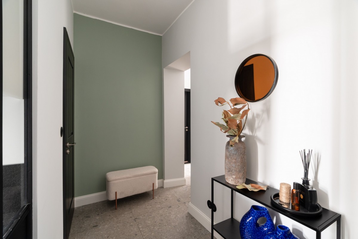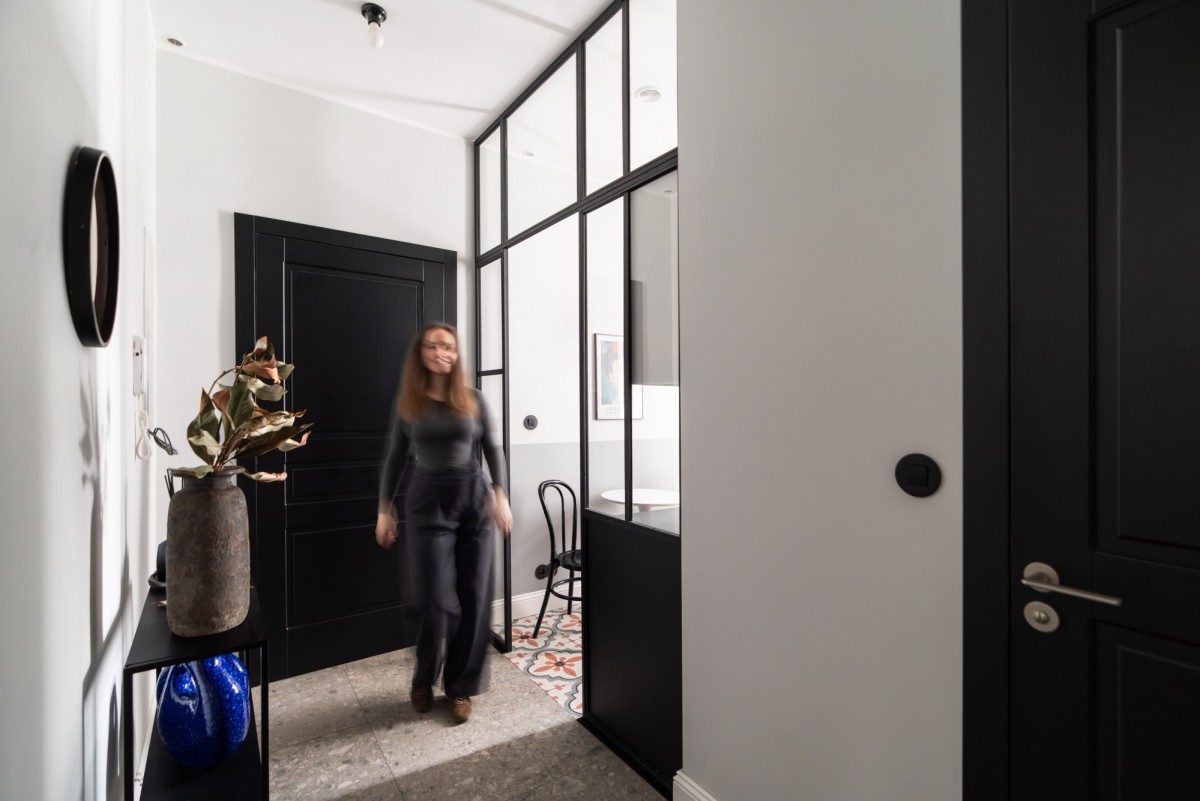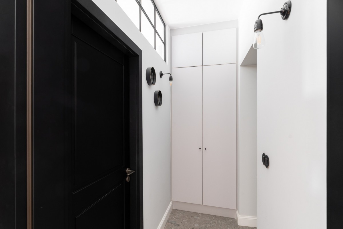 - przedpokój, z zabudową i industrialnymi przeszkleniami, które dodają charakteru
