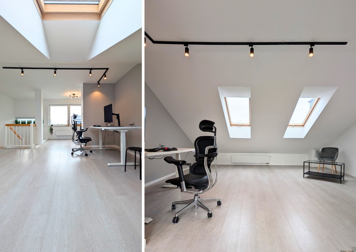 W PEŁNI WYKOŃCZONE PODDASZE - doskonałe na trzecią sypialnię, pokój zabaw dla dzieci lub cichy gabinet do pracy zdalnej. Klimatyzacja na poddaszu.