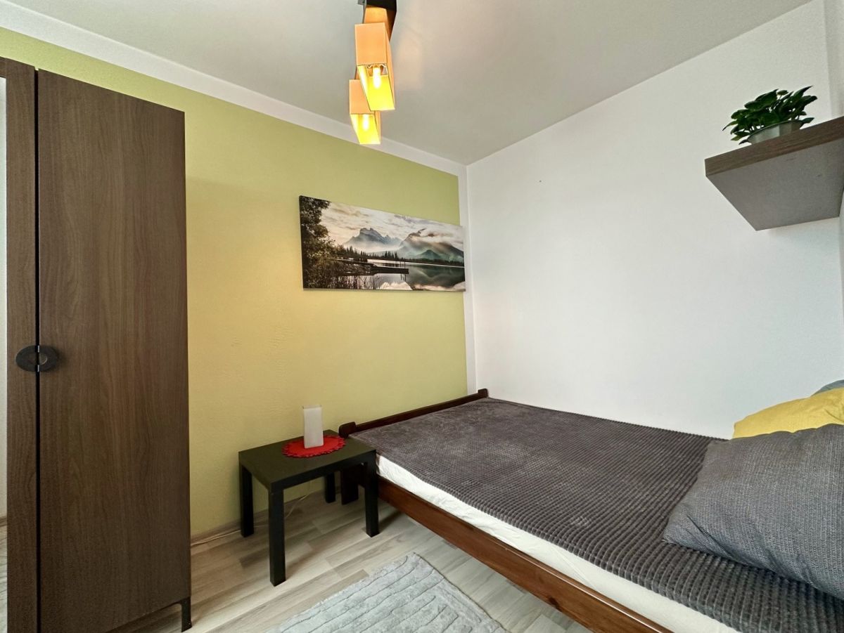 Pokoje są ustawne i kompletnie umeblowane. Zostaje wszystko, włącznie z telewizorem.