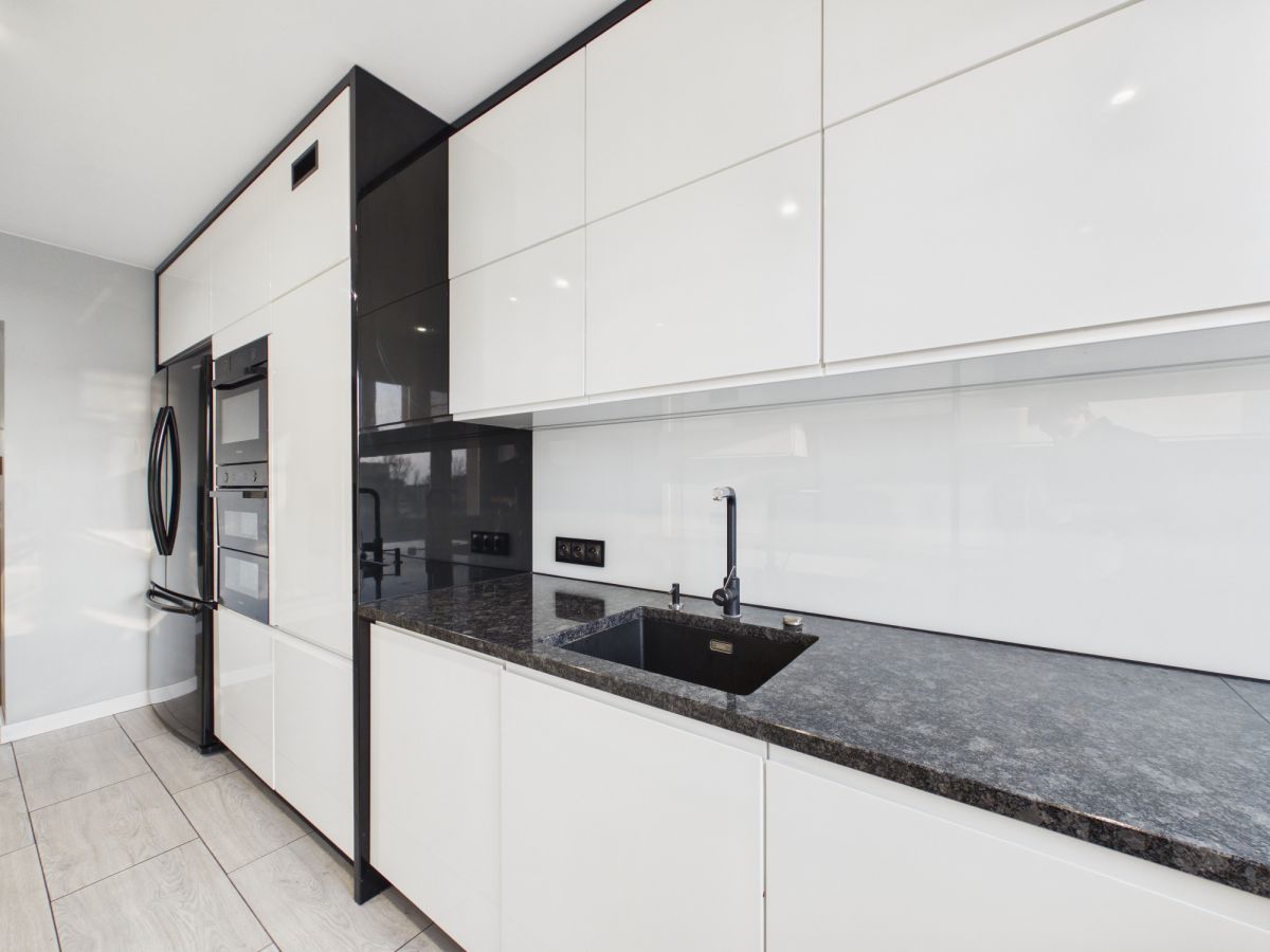 zmywarkę oraz lodówkę typu side-by-side z kostkarką i dozownikiem wody.