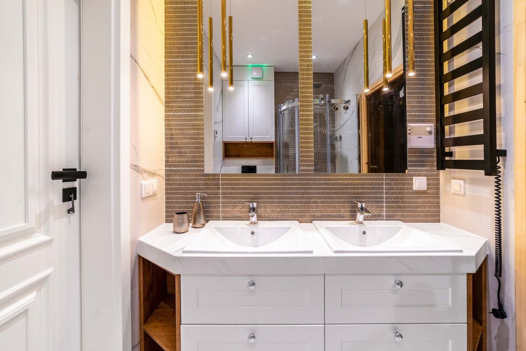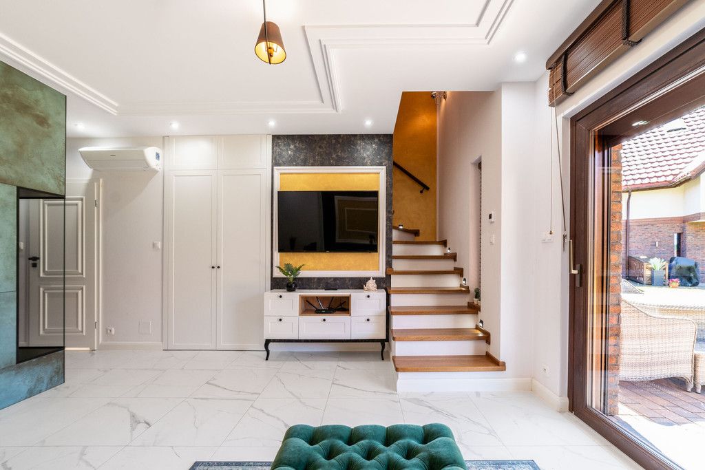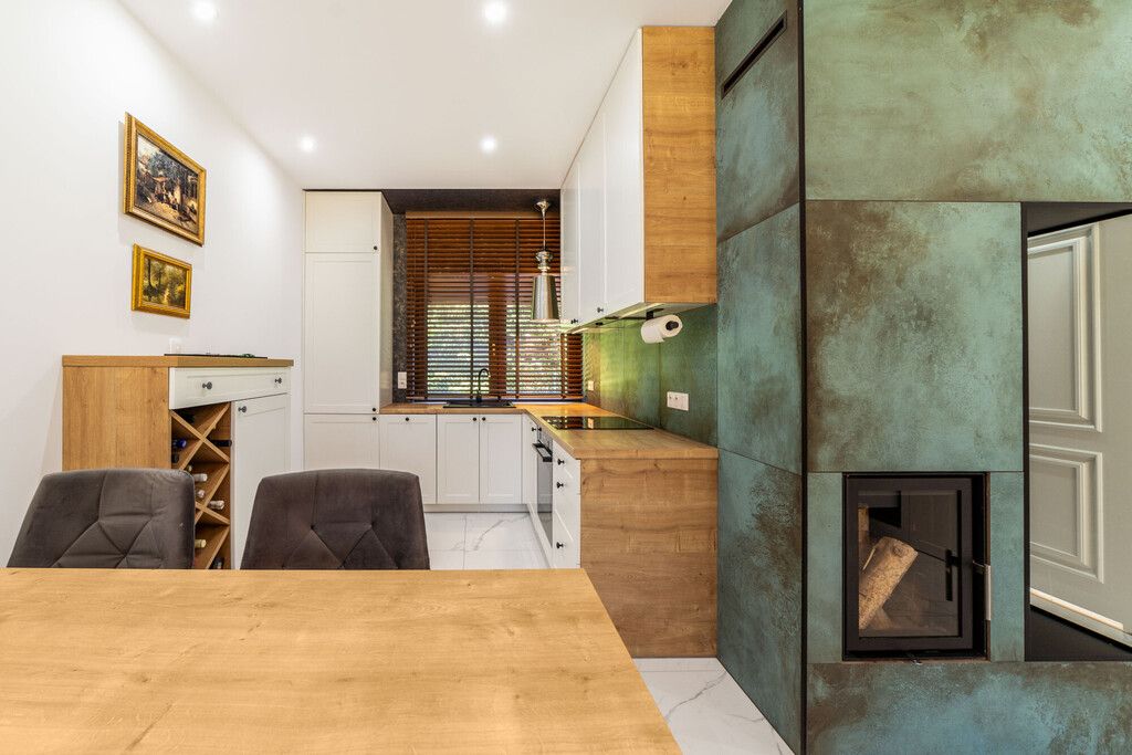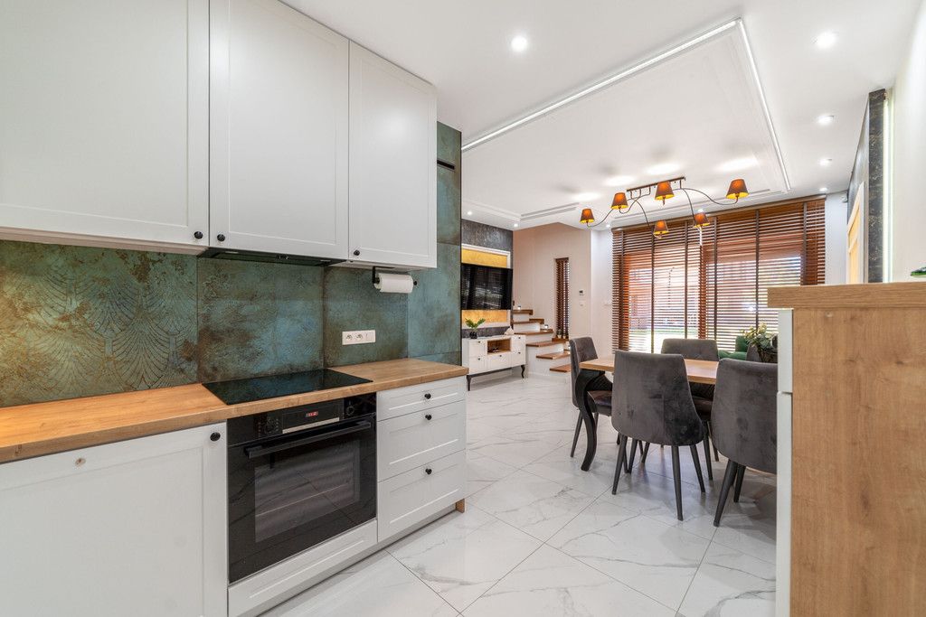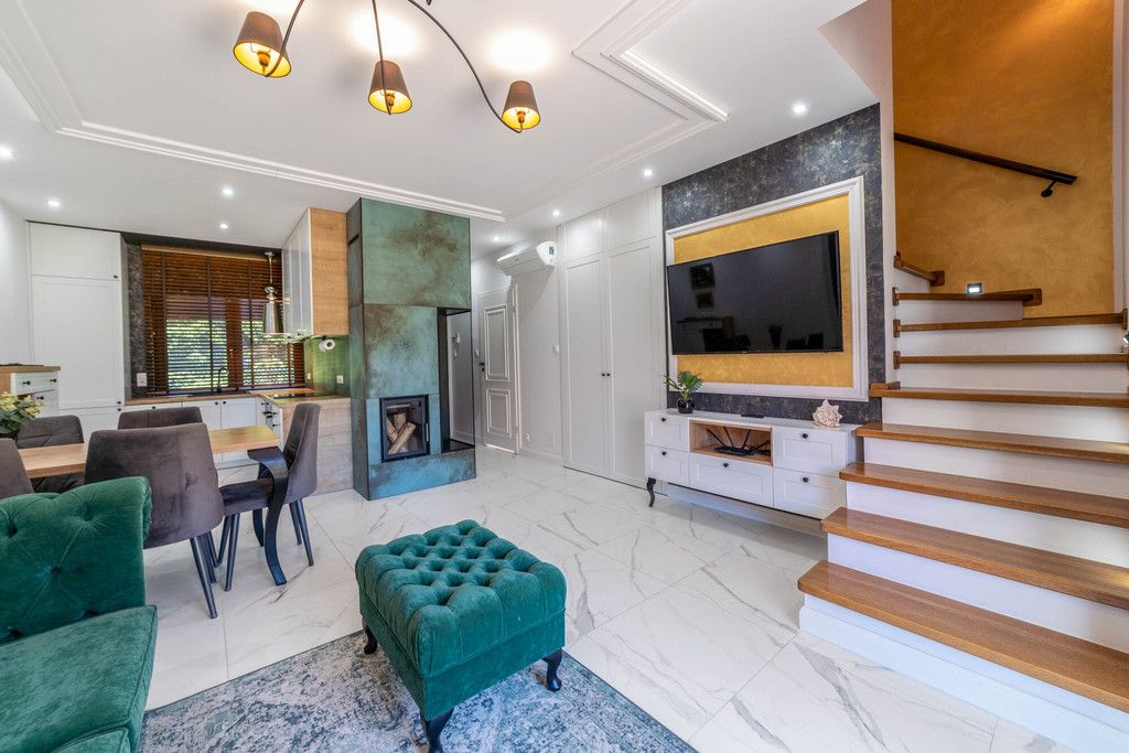 Całość wykonana z wysokiej klasy materiałów wykończeniowych. Zabudowy stolarskie na wymiar.