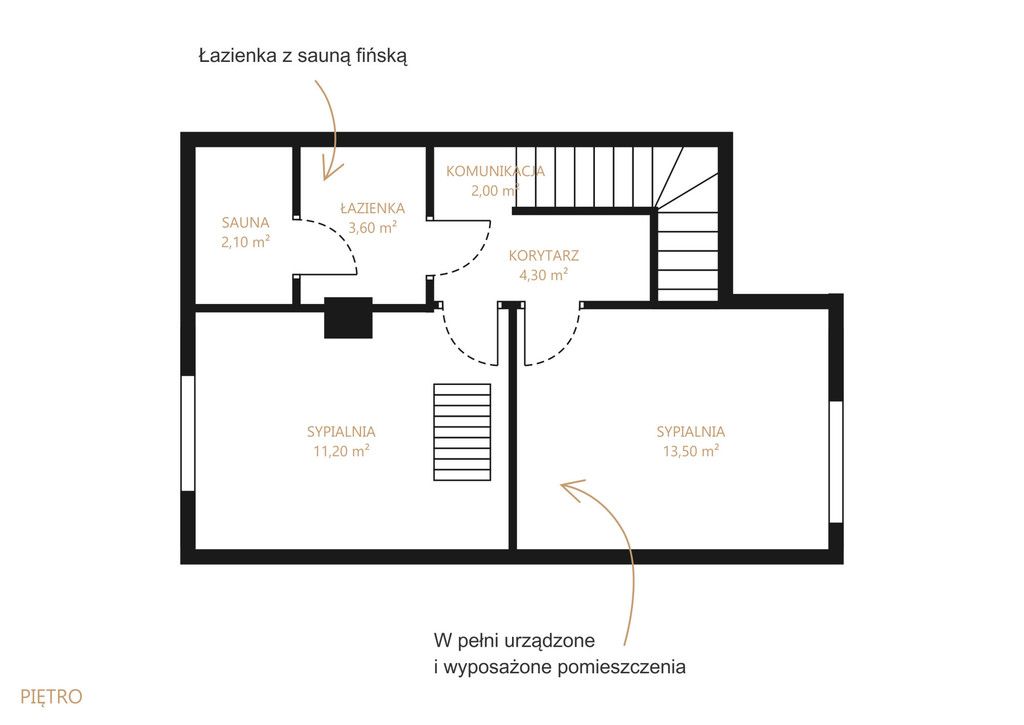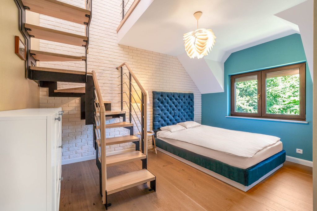 - sypialnia z wejściem na użytkowe poddasze gdzie znajduje się trzecia sypialnia