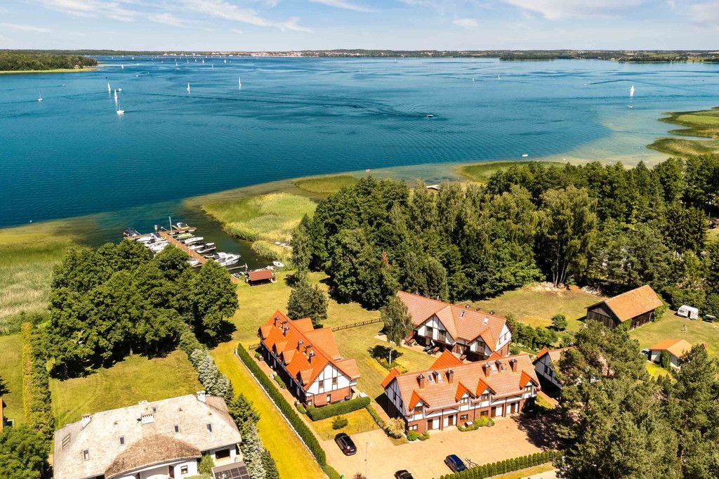 Apartament z funkcjonalnością domu nad jeziorem Niegocin. Urokliwe miejsce na Szlaku Wielkich Jezior Mazurskich z prywatną plażą i miejscem przy kei.