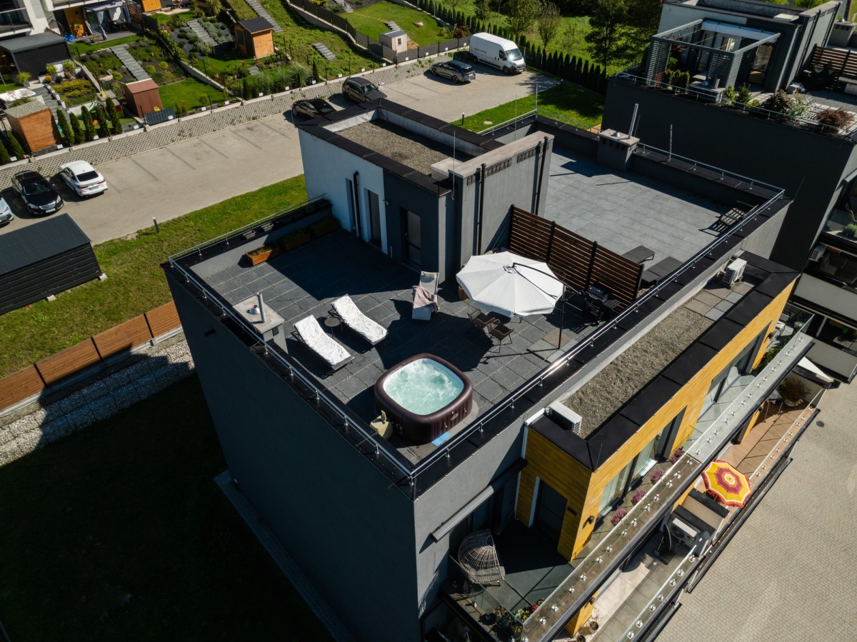 - 100-metrowy prywatny taras na dachu z możliwością montażu jacuzzi,