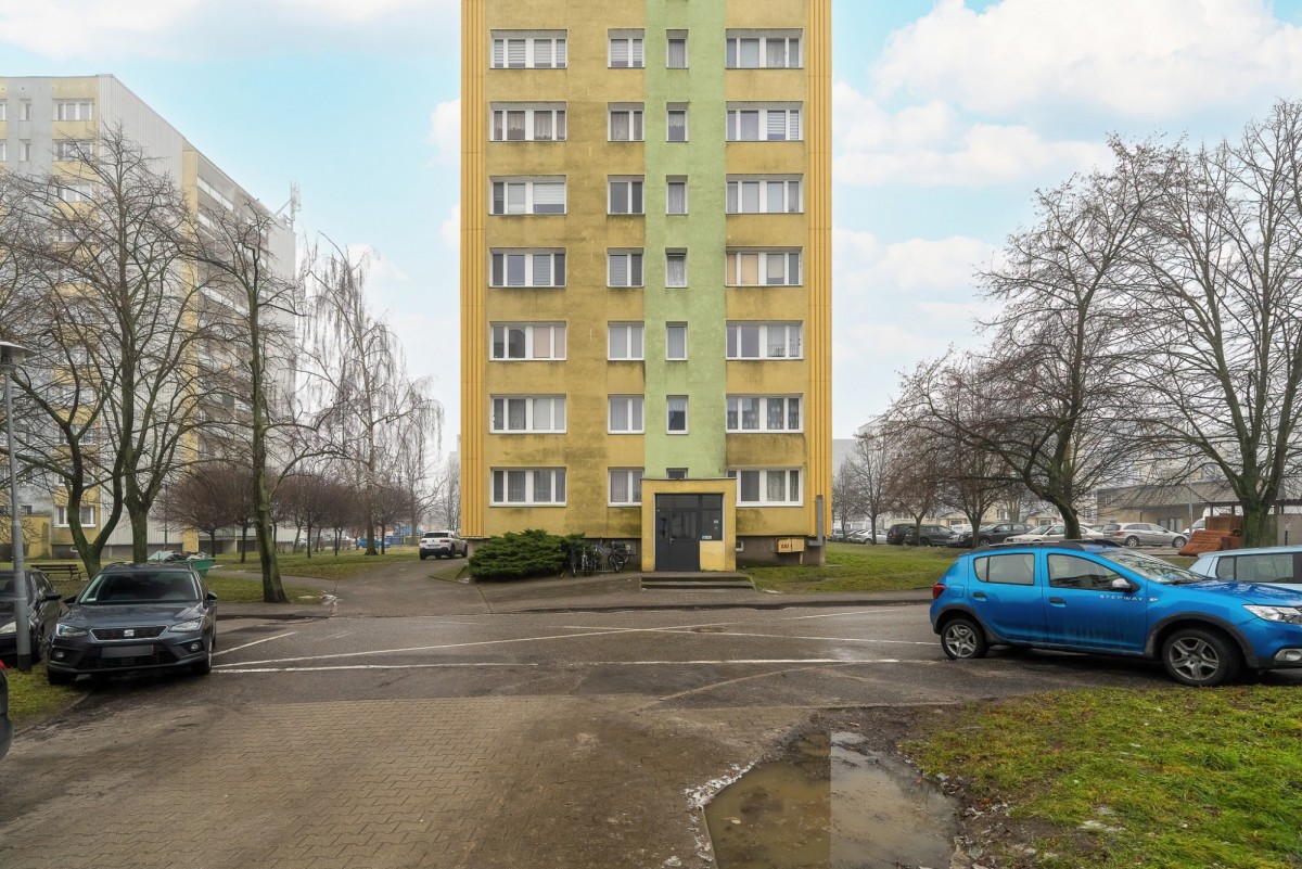 Budynek z windą, odnowione klatki schodowe, zadbane i spokojne otoczenie.