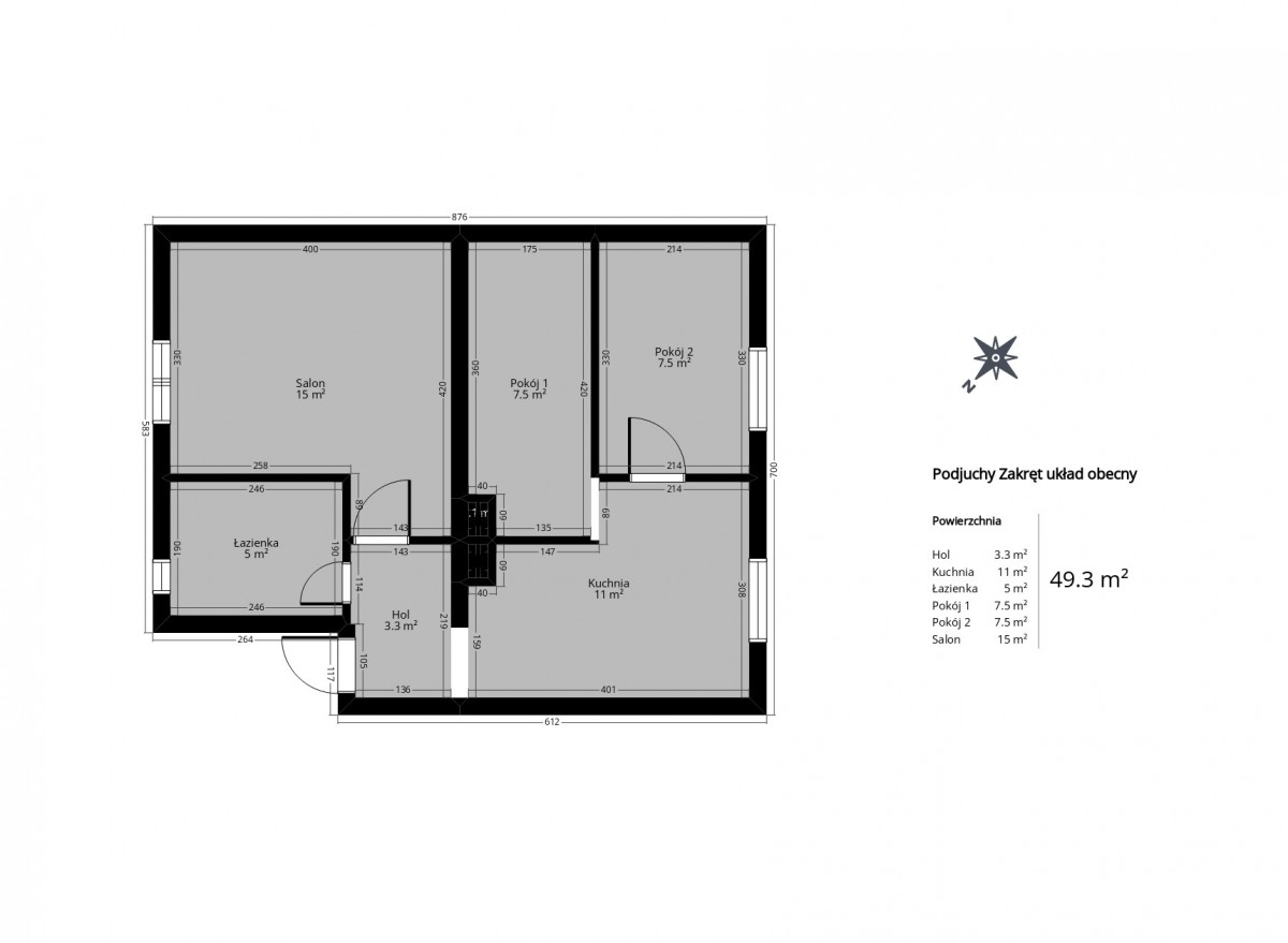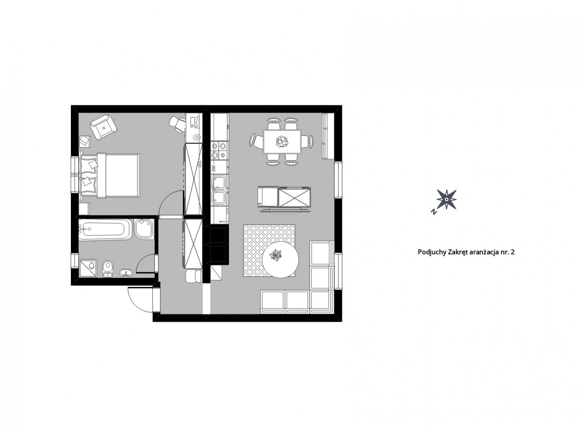 Istnieje możliwość łatwego przywrócenia dawnego układu, ale także dowolnego kształtowania przestrzeni dziennej, dzięki czemu uzyskamy przestronny salon z aneksem kuchennym i częścią jadalnianą (rzut i wizualizacja).