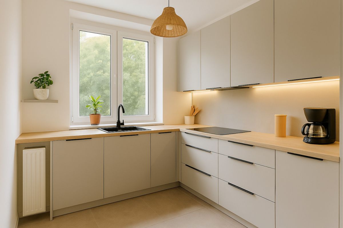 - Jasna kuchnia z oknem - wypełniona naturalnym światłem, stworzona do porannych rytuałów z kubkiem aromatycznej kawy;