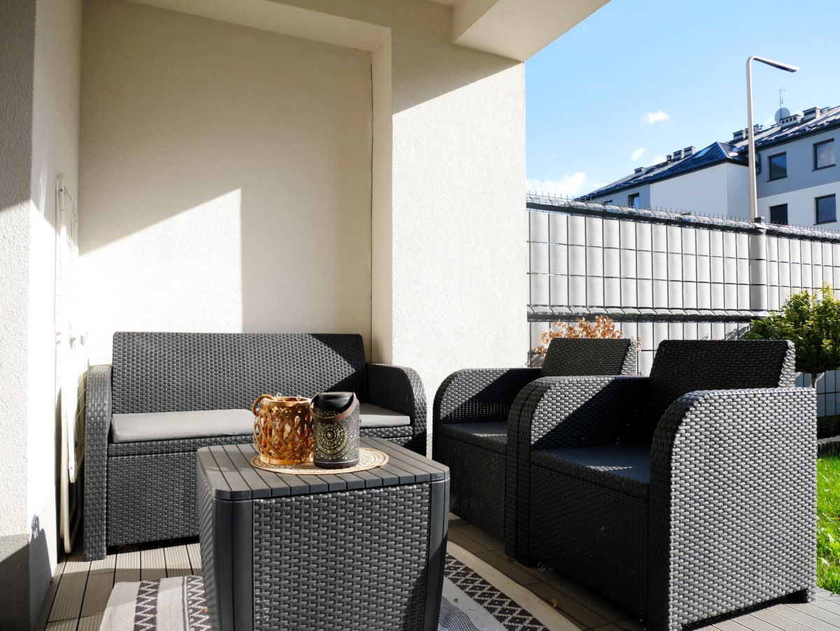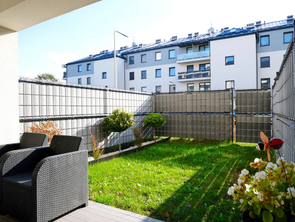 - taras z wyjściem na prywatny ogródek - łącznie ok. 22 m2, na którym można w spokoju zaczerpnąć powietrza, napić się kawy lub poczytać książkę